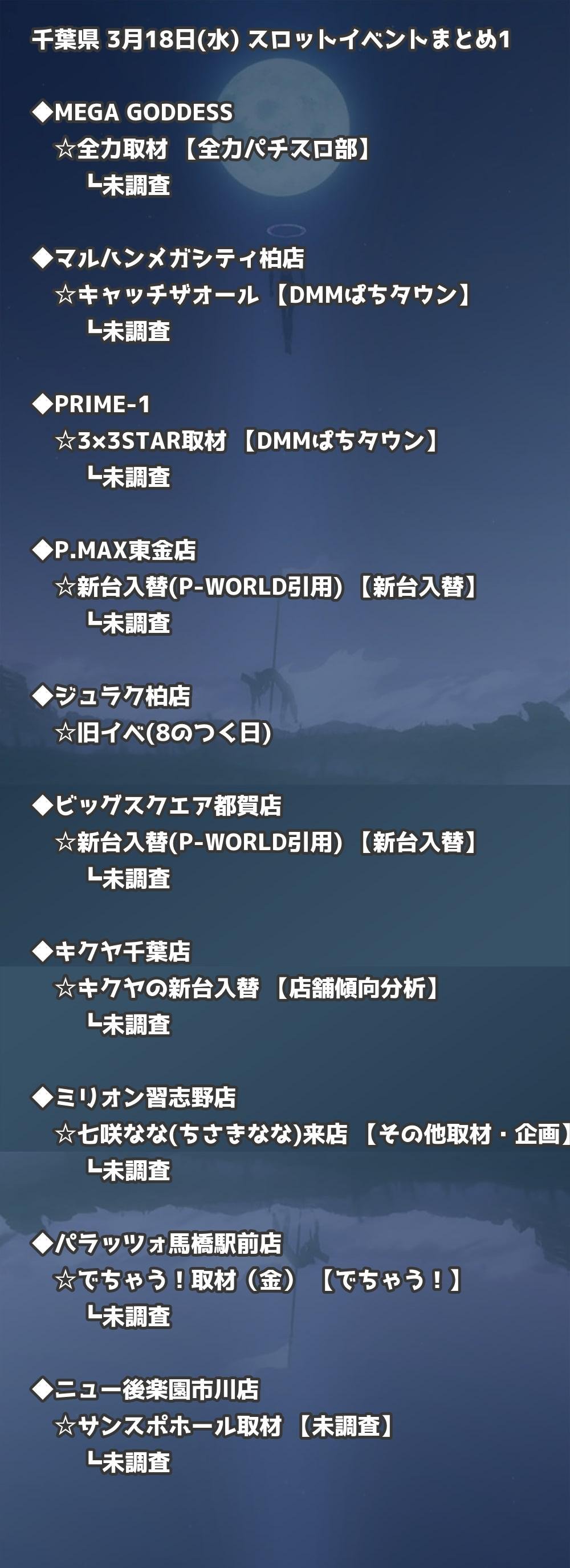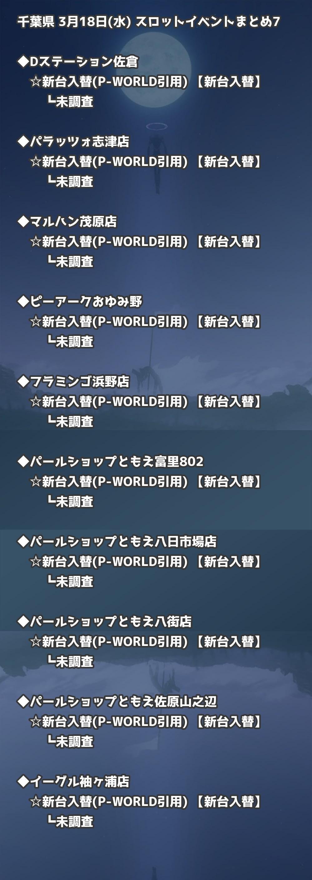 | マルハン茂原店 | 新台入替(P-WORLD引用) | 新台入替 |