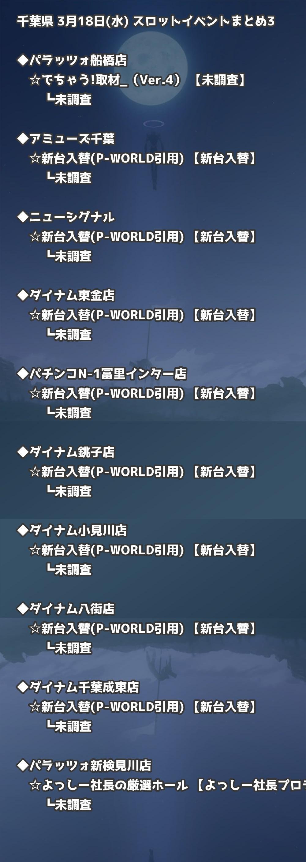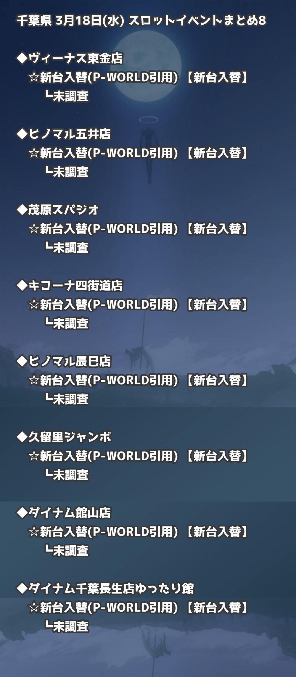 | キコーナ四街道店 | 新台入替(P-WORLD引用) | 新台入替 |