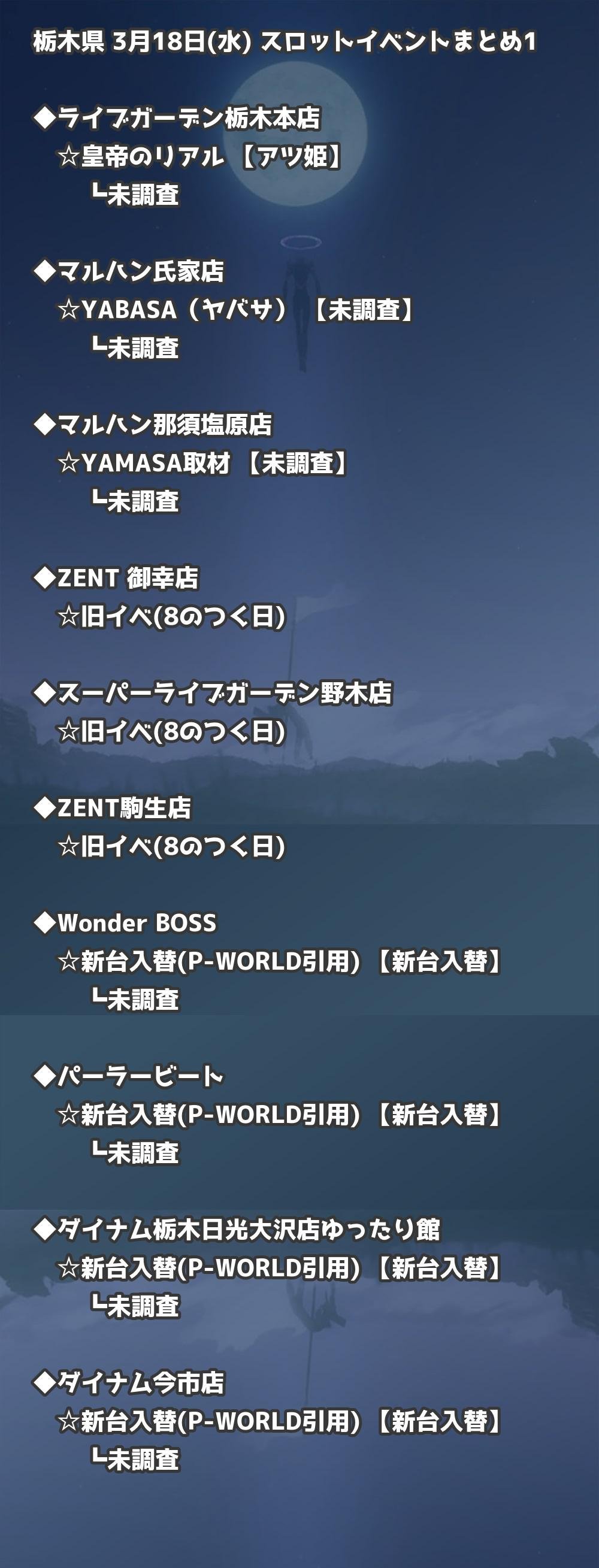 【栃木県】3月18日(水) パチンコホールイベント取材まとめ記事です。