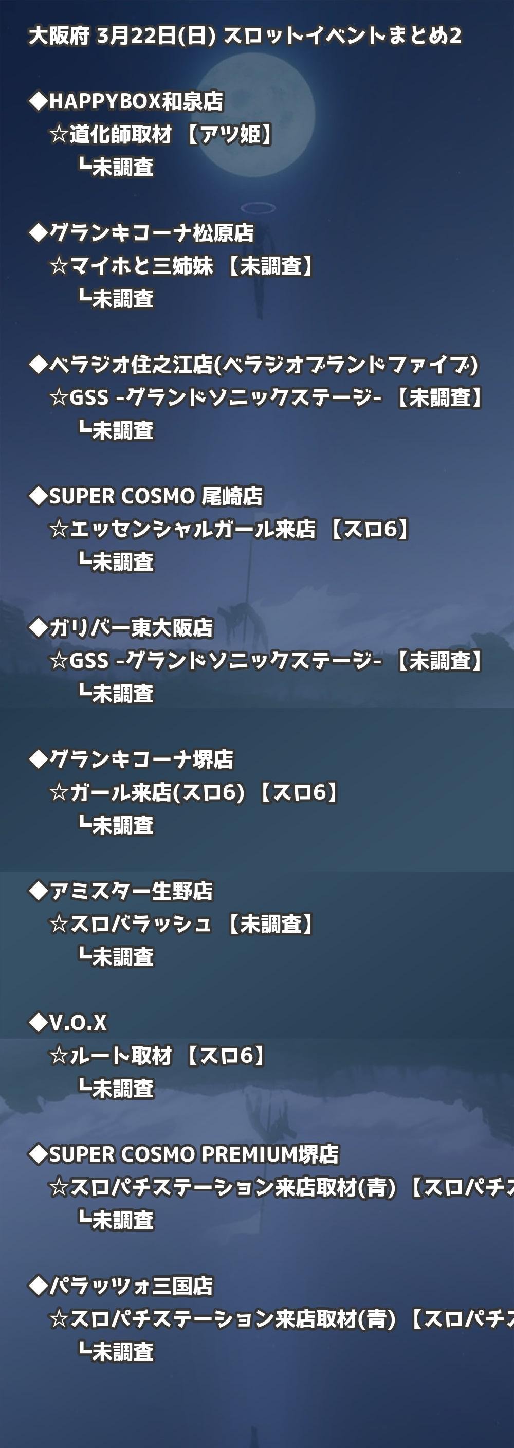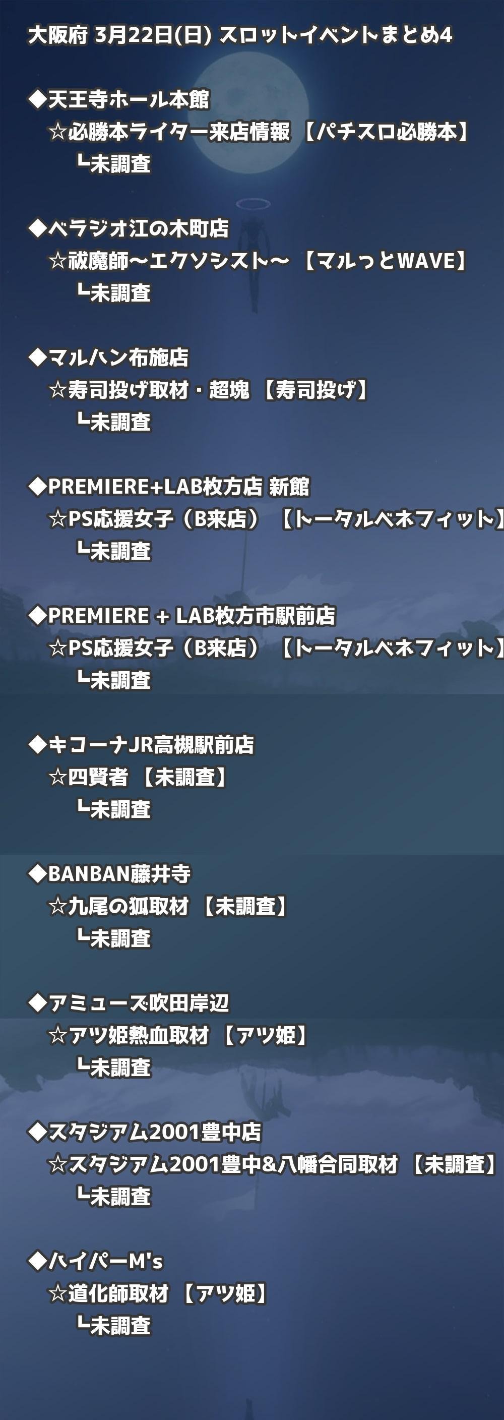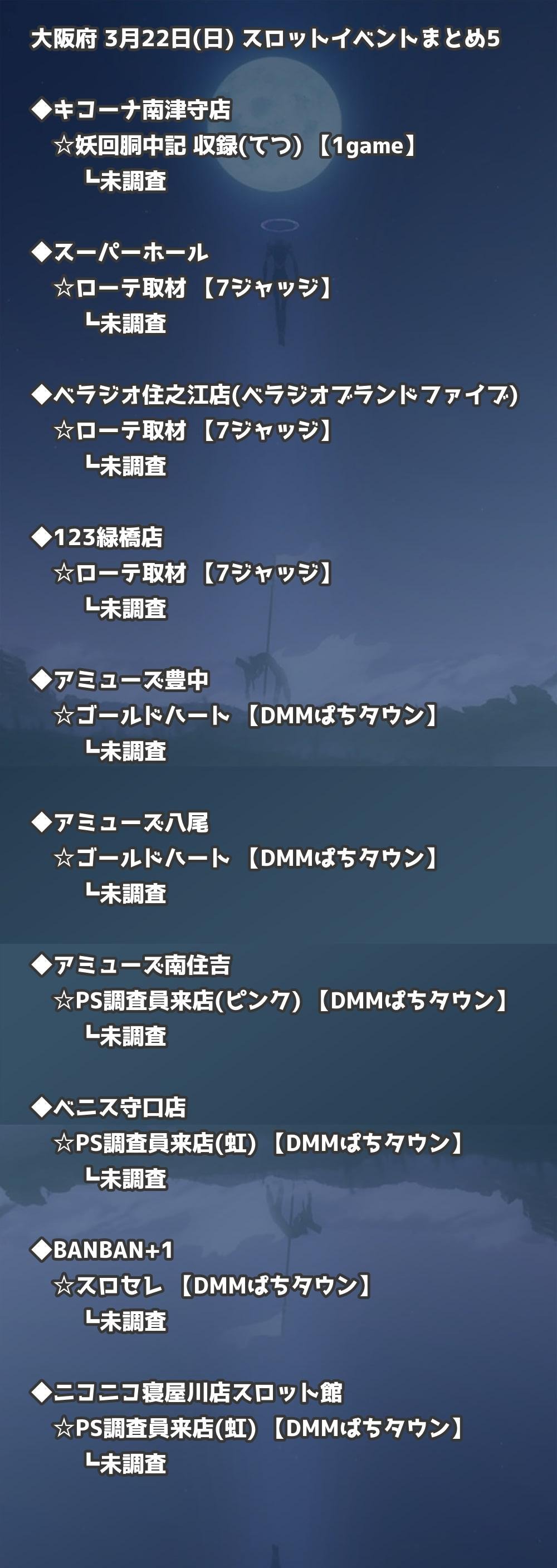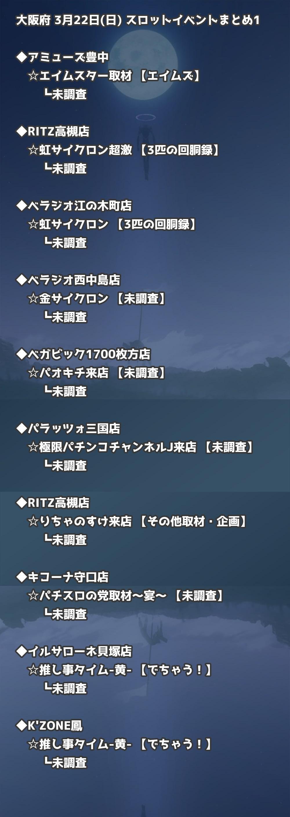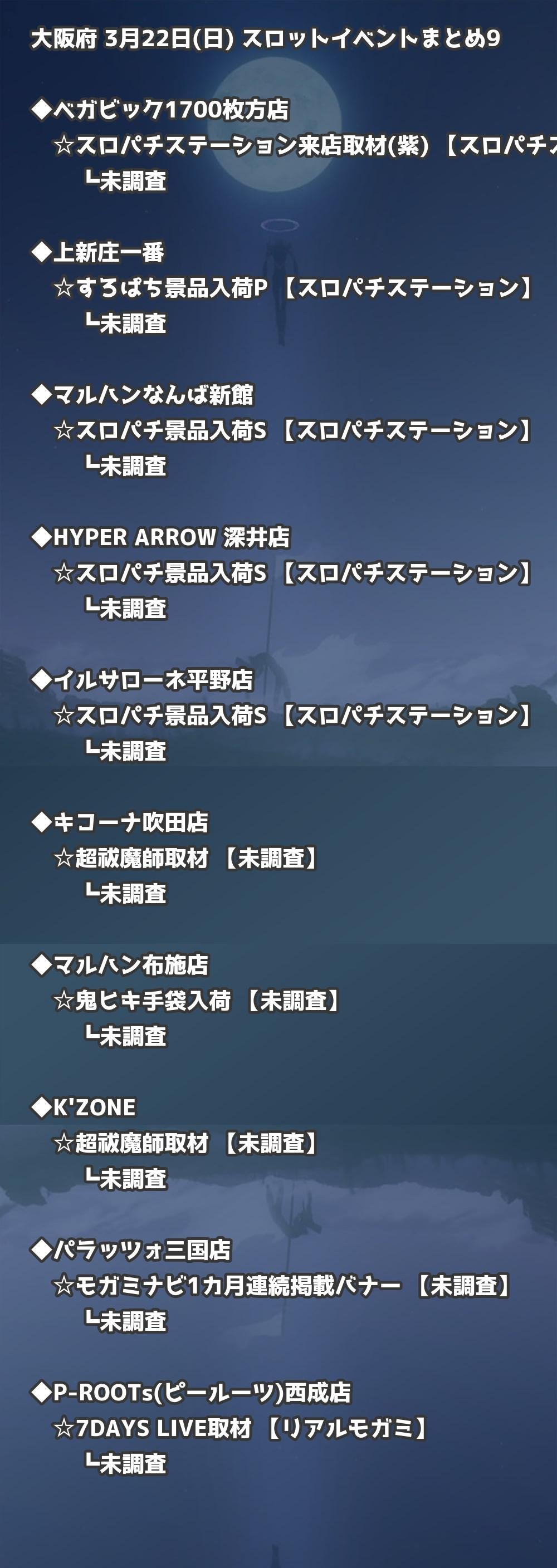 📊 大阪府 3月22日(日) 勝てるパチンコ・スロット取材店舗一覧|おすすめ順