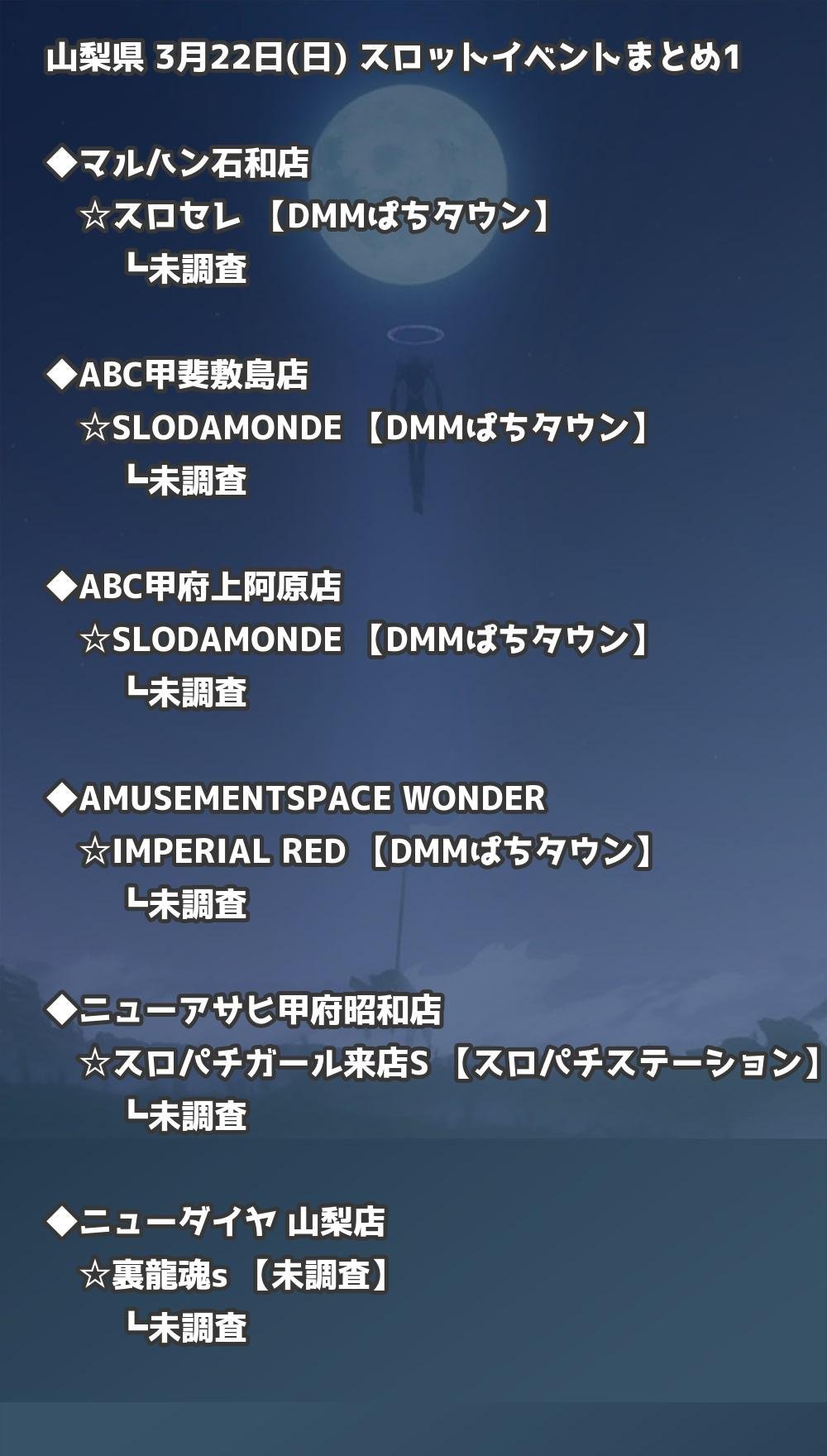 📊 山梨県 3月22日(日) 勝てるパチンコ・スロット取材店舗一覧|おすすめ順