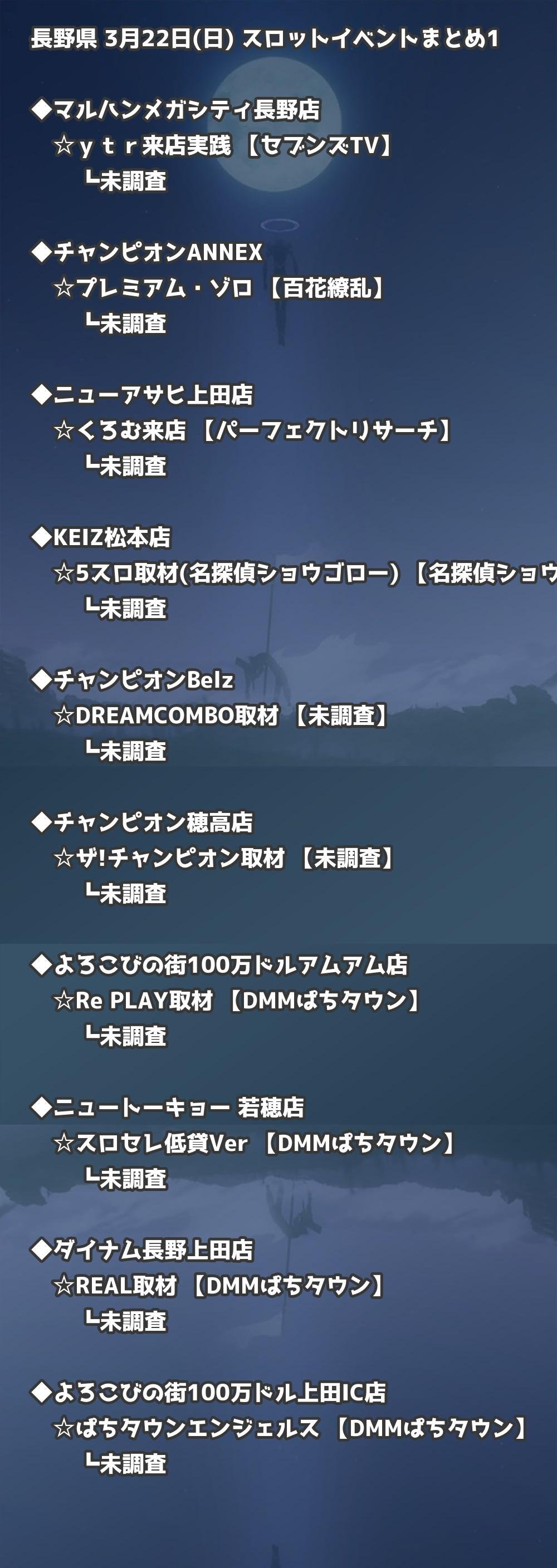 【長野県】3月22日(日) パチンコホールイベント取材まとめ記事です。