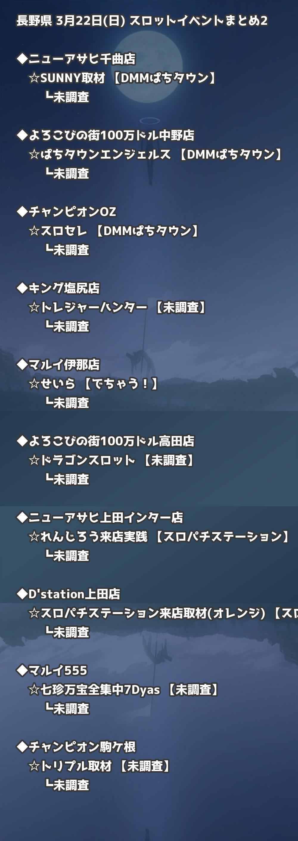📊 長野県 3月22日(日) 勝てるパチンコ・スロット取材店舗一覧|おすすめ順