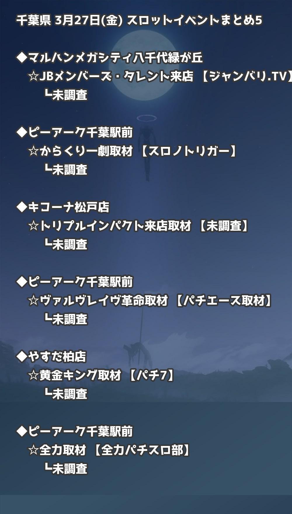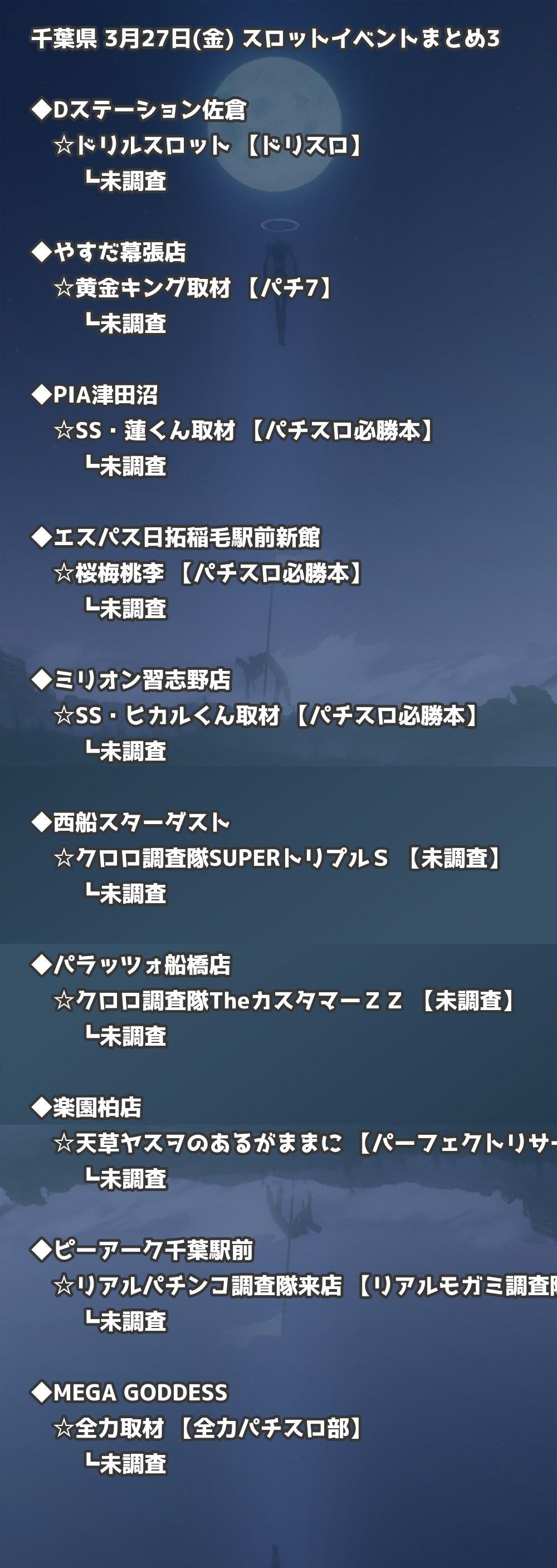 📊 千葉県 3月27日(金) 勝てるパチンコ・スロット取材店舗一覧|おすすめ順