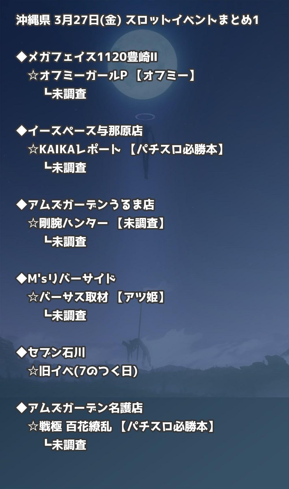 【沖縄県】3月27日(金) パチンコホールイベント取材まとめ記事です。