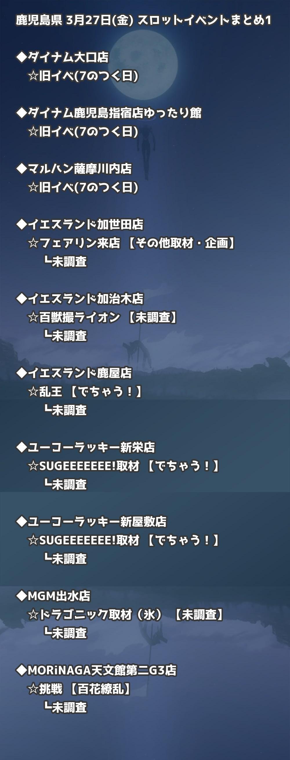 📊 鹿児島県 3月27日(金) 勝てるパチンコ・スロット取材店舗一覧|おすすめ順