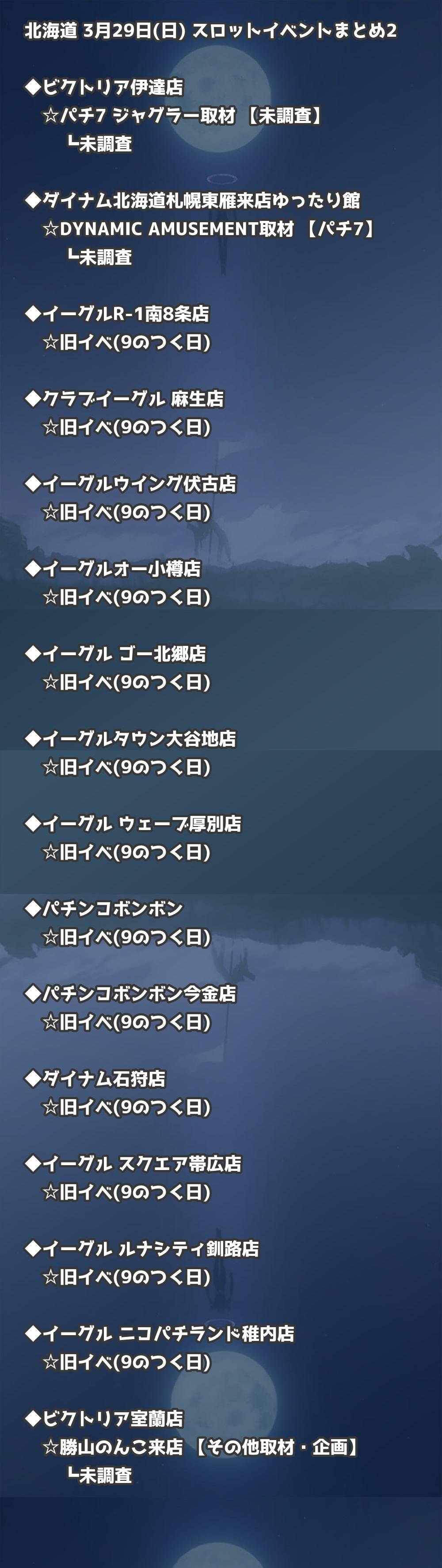 【北海道】3月29日(日) パチンコホールイベント取材まとめ記事です。