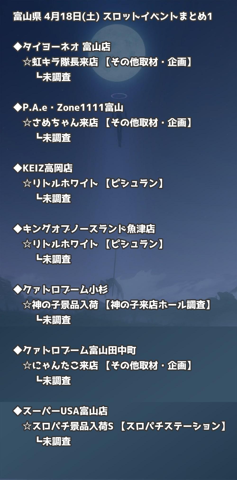 【富山県】4月18日(土) パチンコホールイベント取材まとめ記事です。