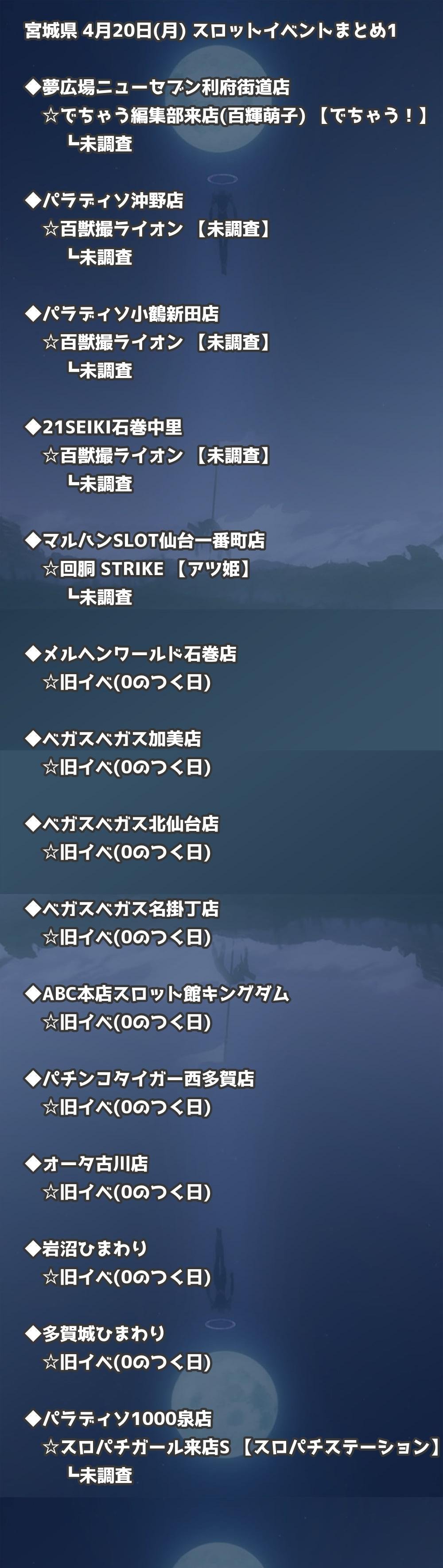 【宮城県】4月20日(月) パチンコホールイベント取材まとめ記事です。