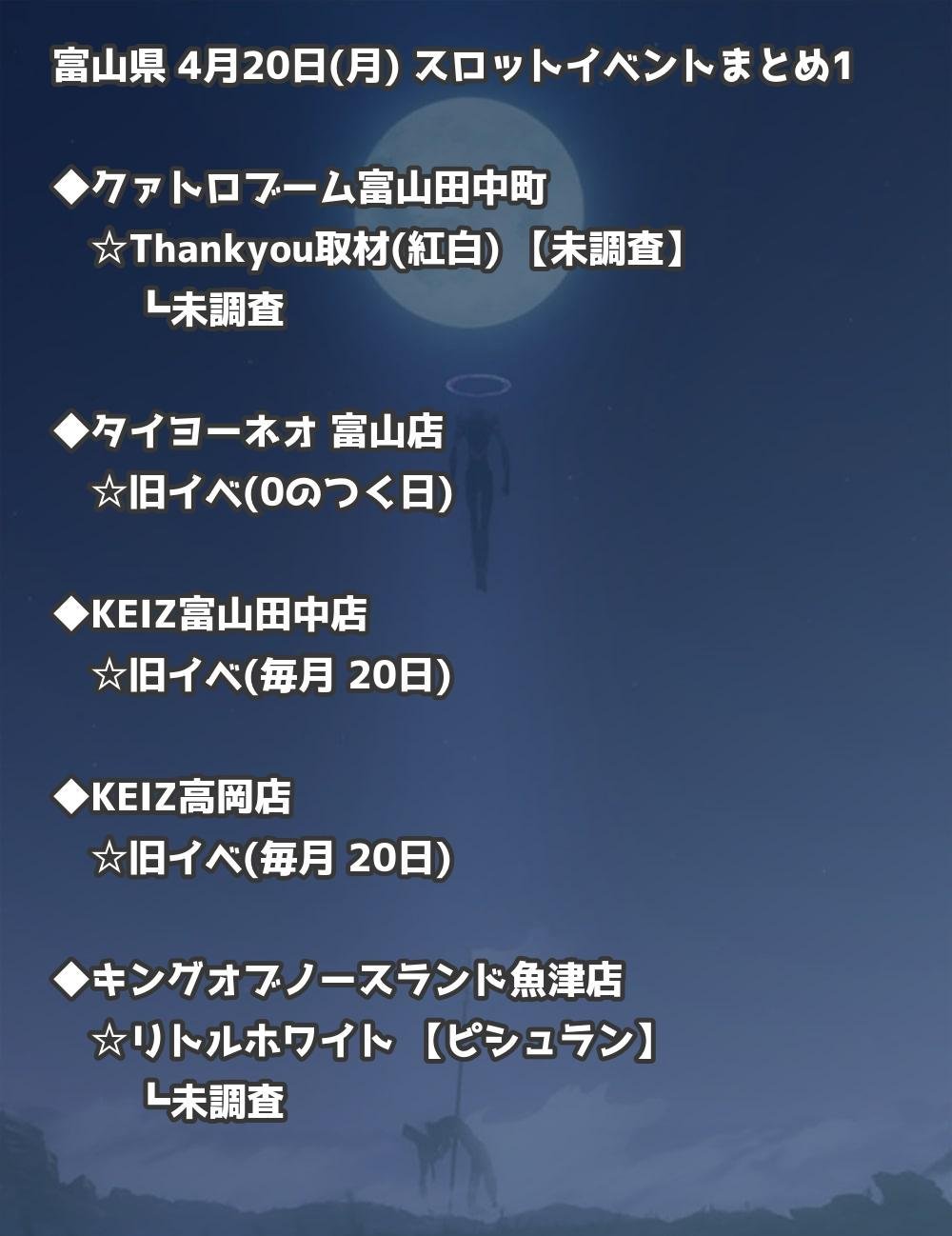 【富山県】4月20日(月) パチンコホールイベント取材まとめ記事です。