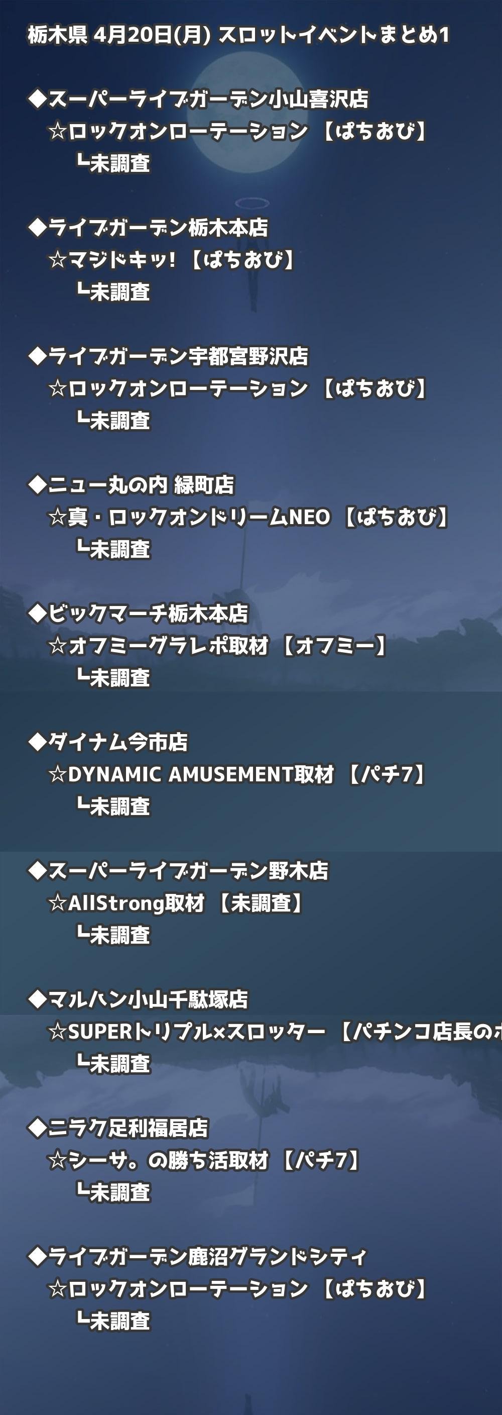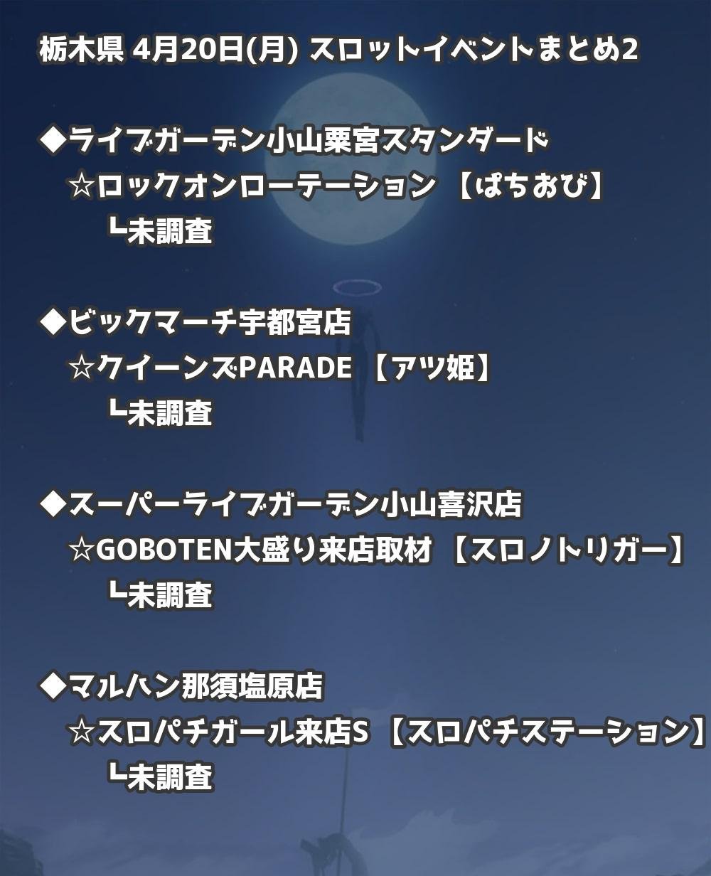 【栃木県】4月20日(月) パチンコホールイベント取材まとめ記事です。