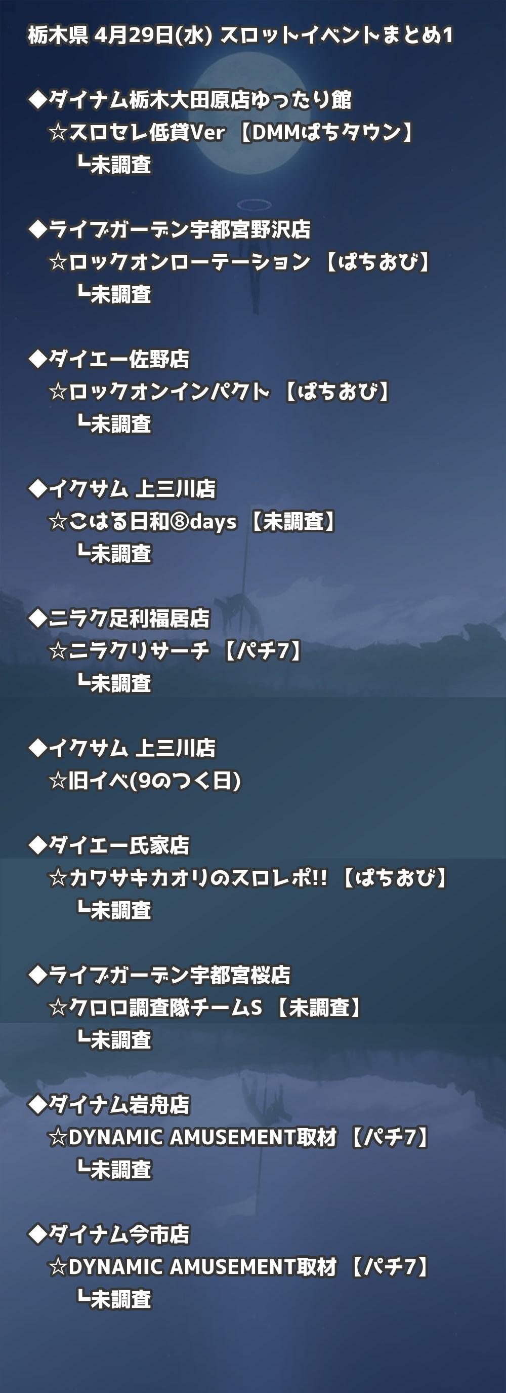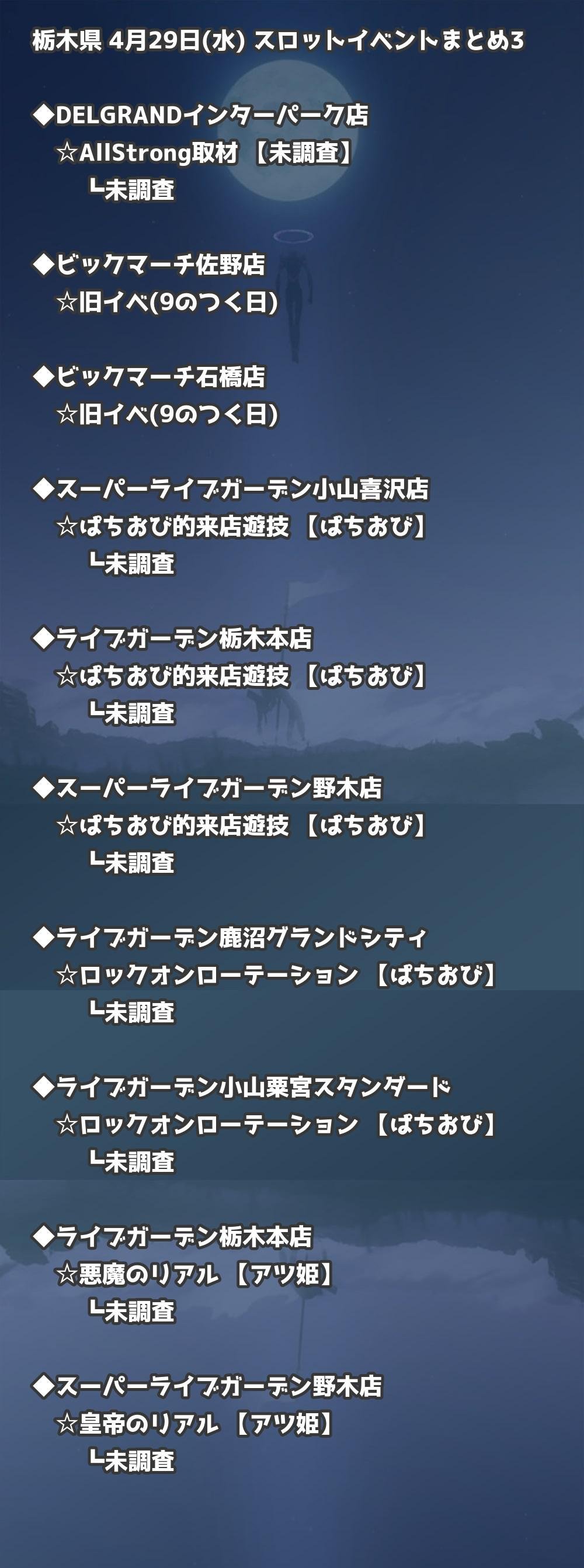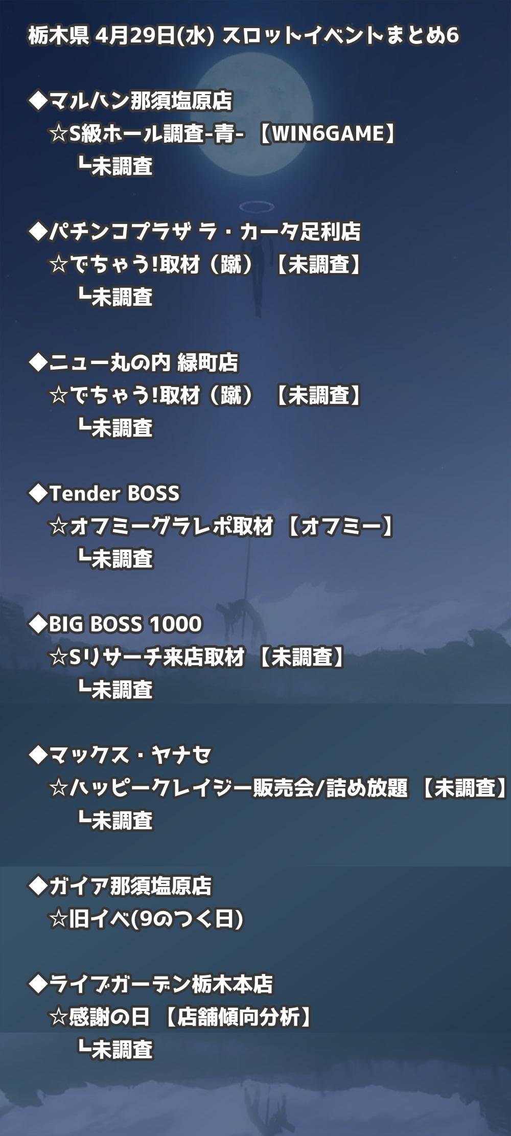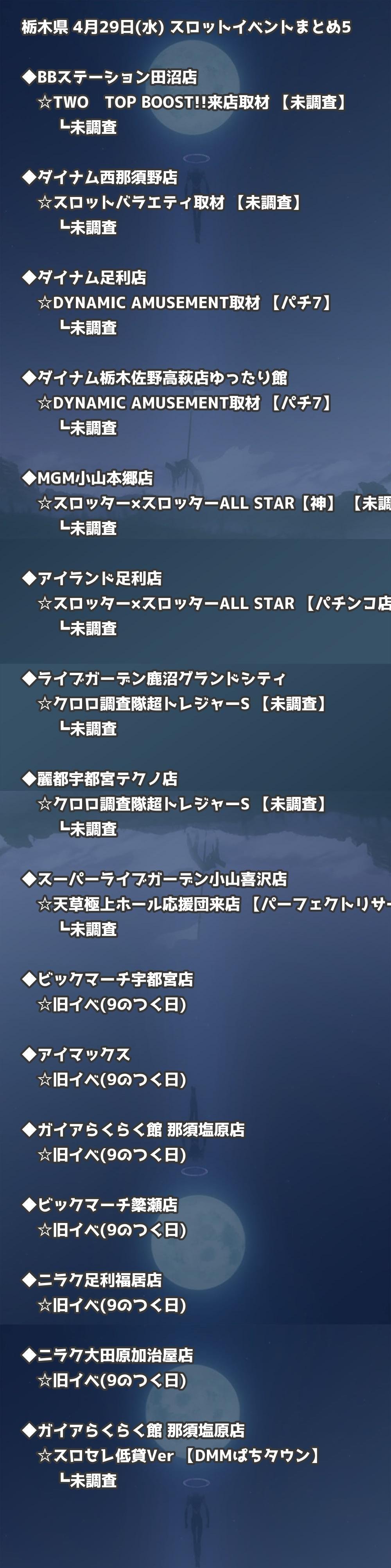 【栃木県】4月29日(水) パチンコホールイベント取材まとめ記事です。
