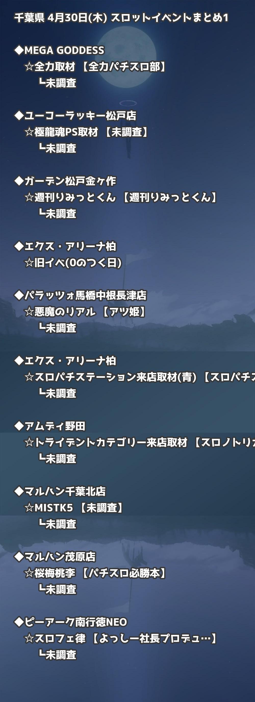 📊 千葉県 4月30日(木) 勝てるパチンコ・スロット取材店舗一覧|おすすめ順