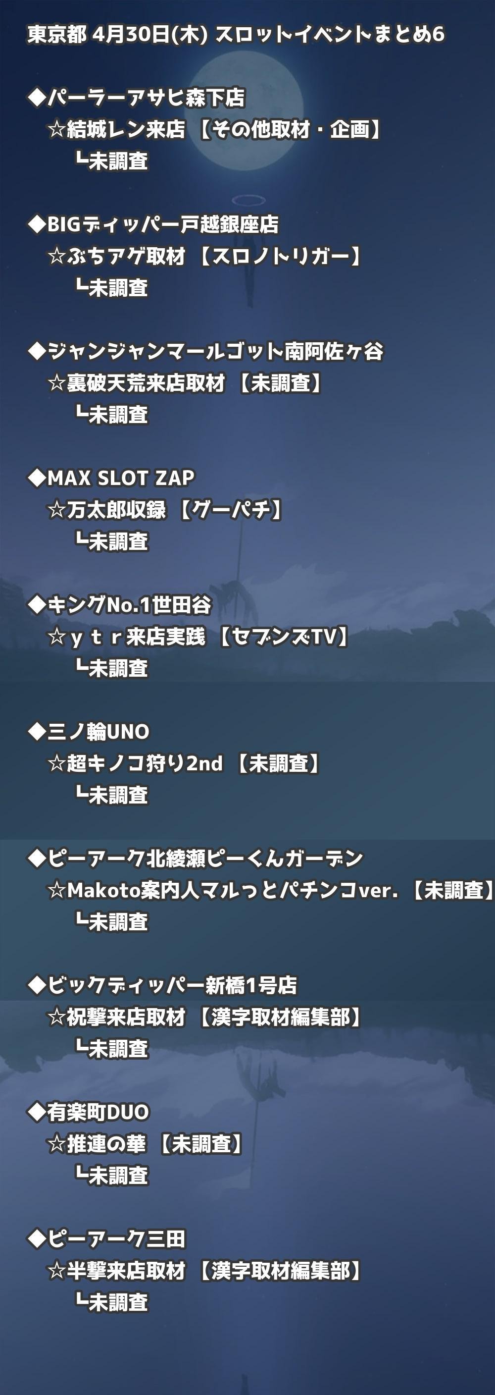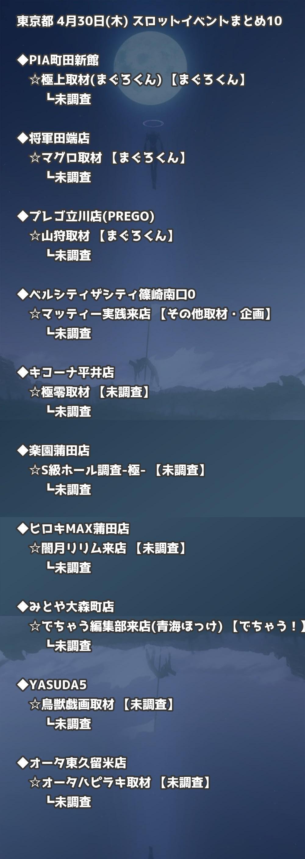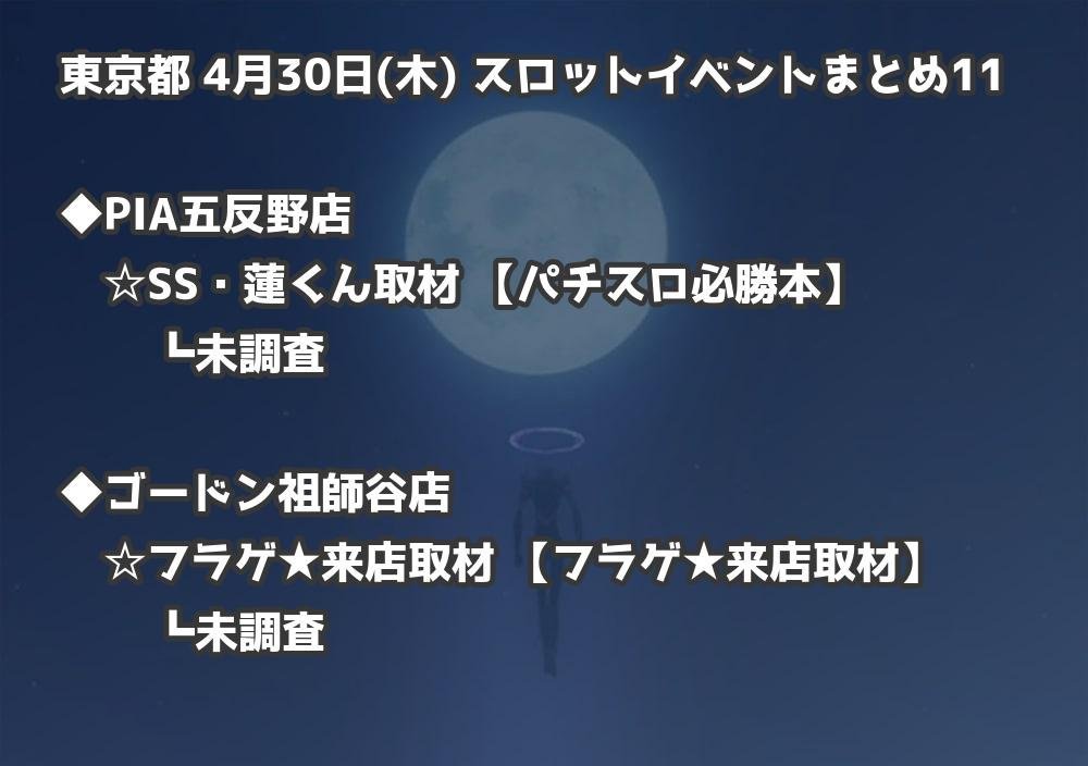 📊 東京都 4月30日(木) 勝てるパチンコ・スロット取材店舗一覧|おすすめ順