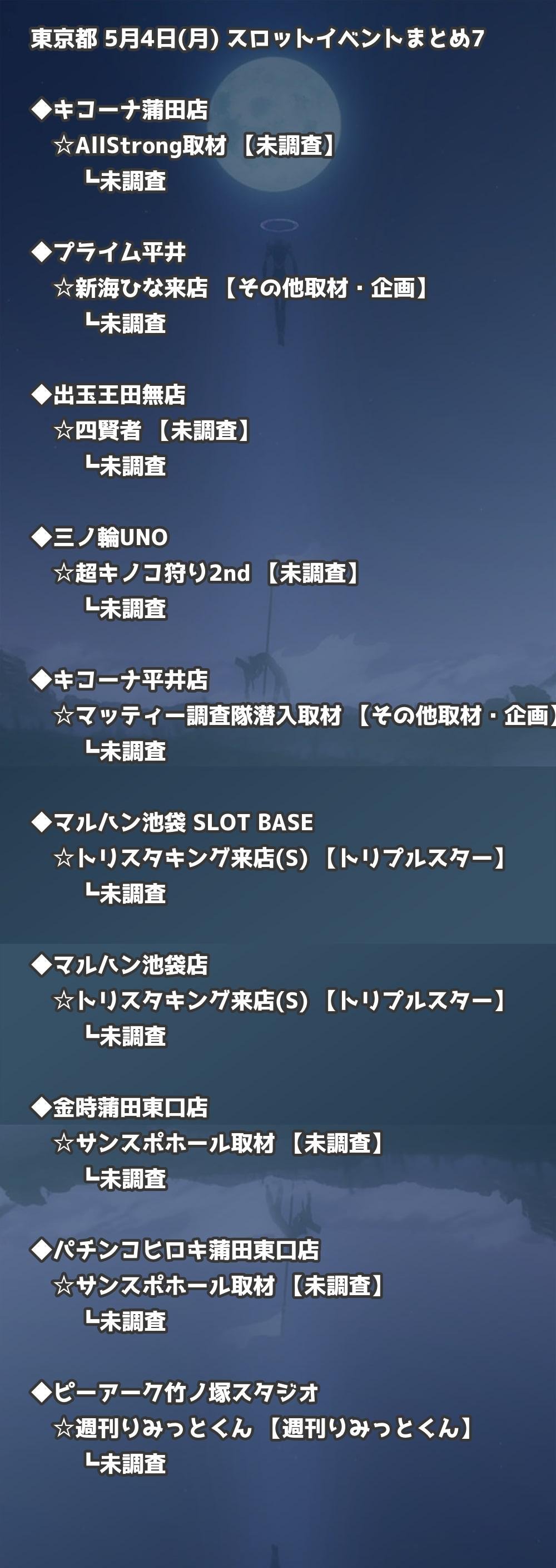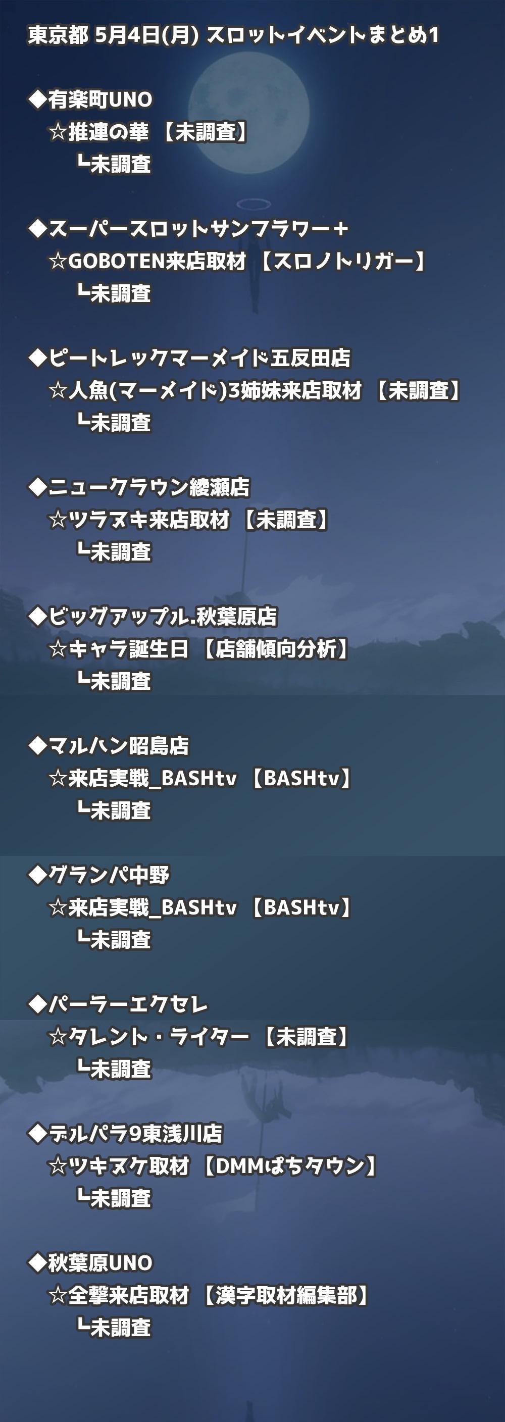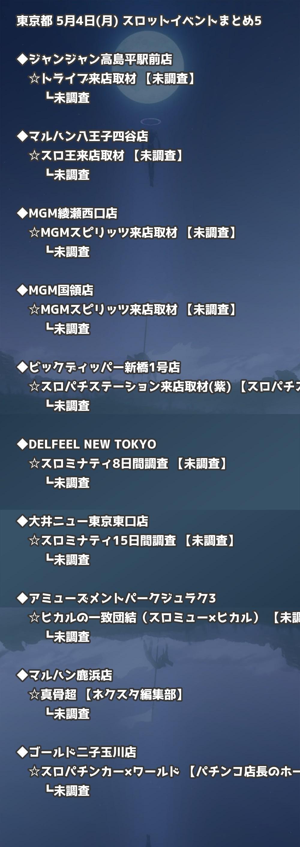 📊 東京都 5月4日(月) 勝てるパチンコ・スロット取材店舗一覧|おすすめ順