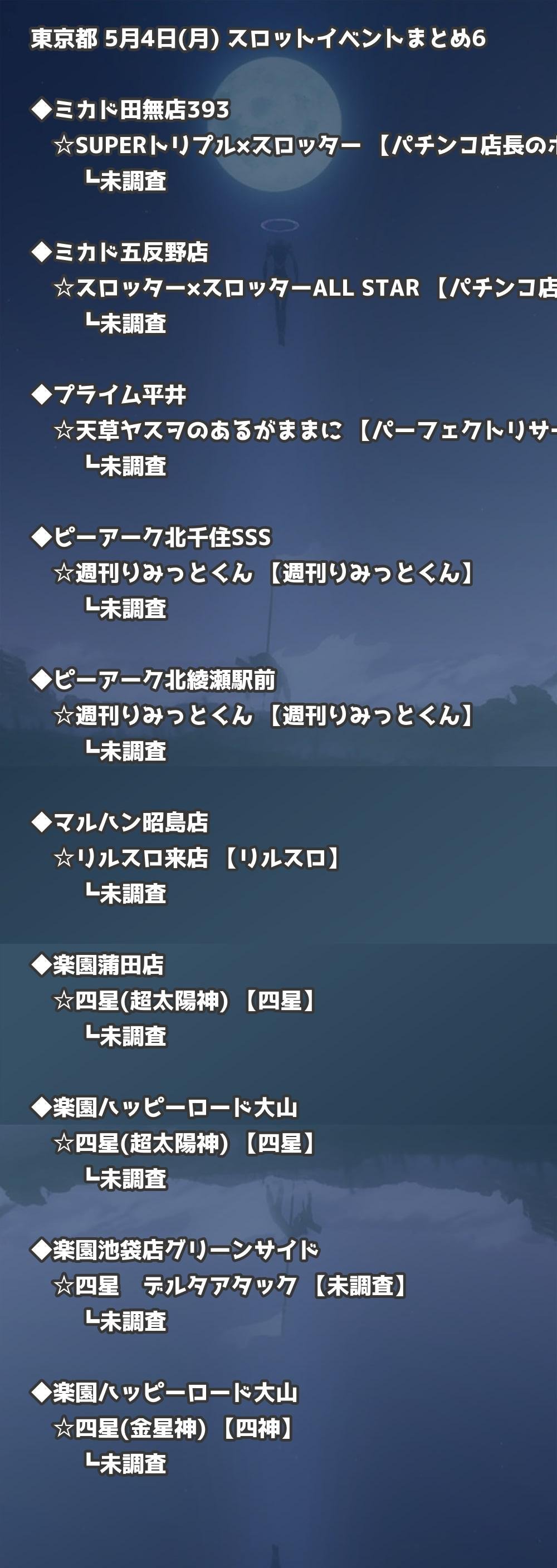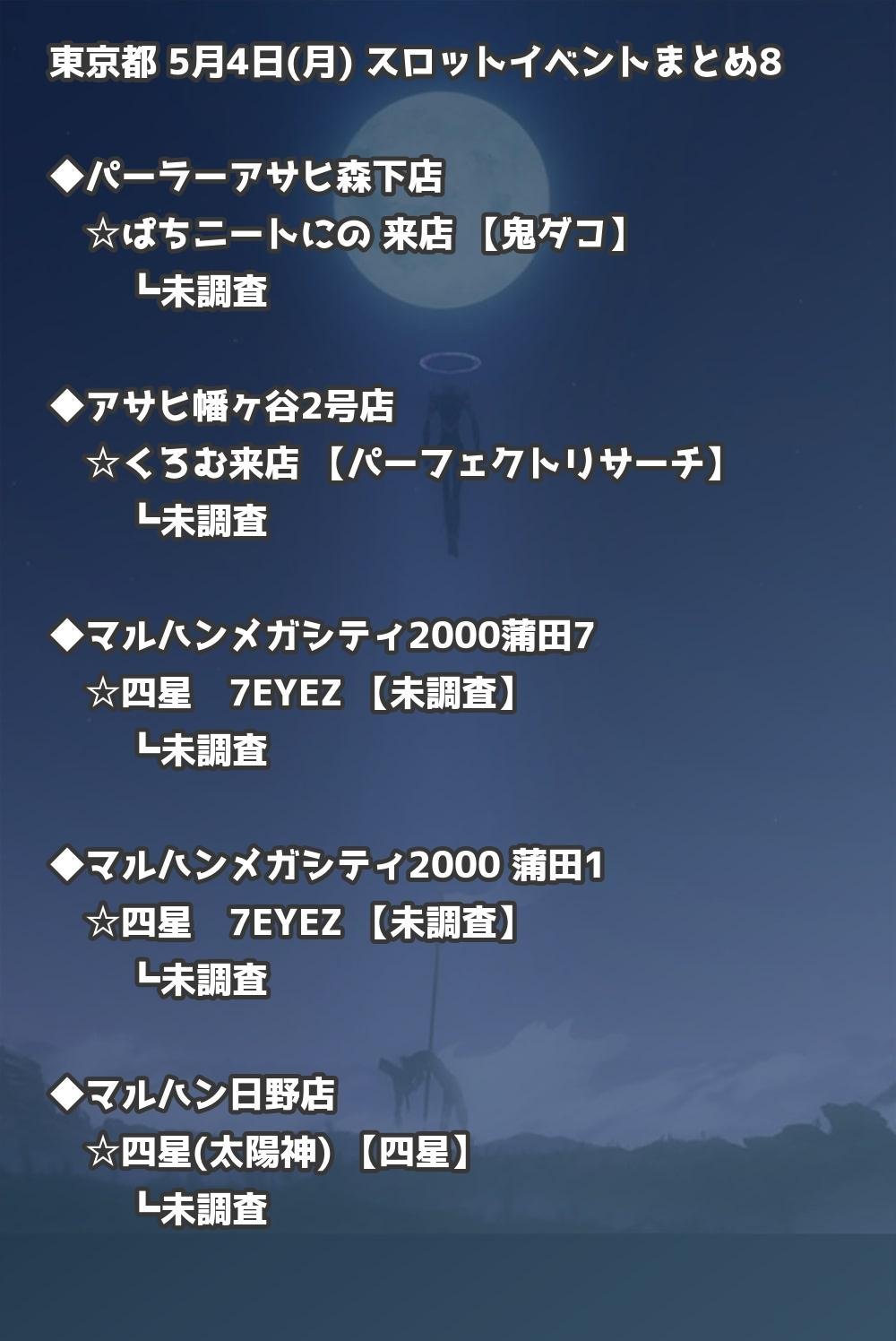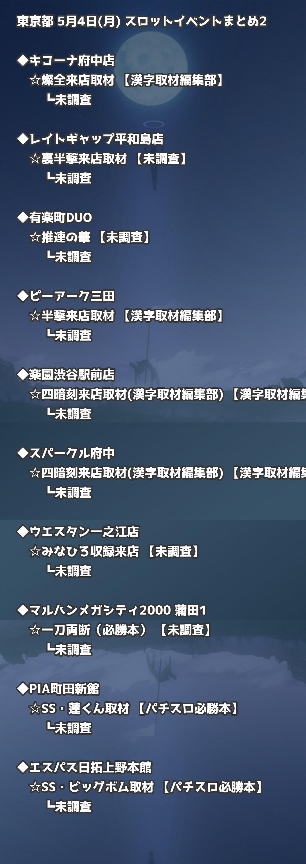📊 東京都 5月4日(月) 勝てるパチンコ・スロット取材店舗一覧|おすすめ順