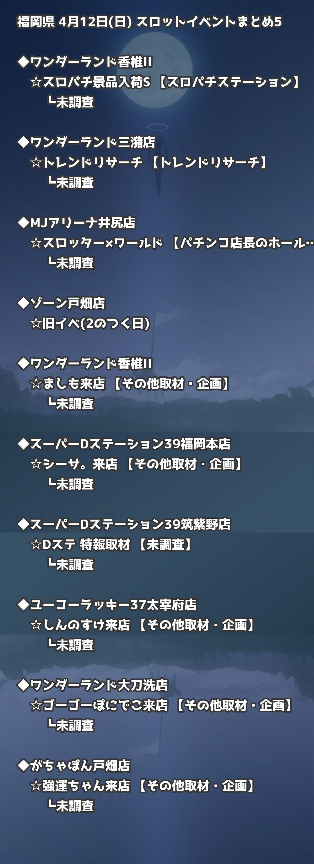 | ワンダーランド香椎II | スロパチ景品入荷予定(赤) | 未調査 |