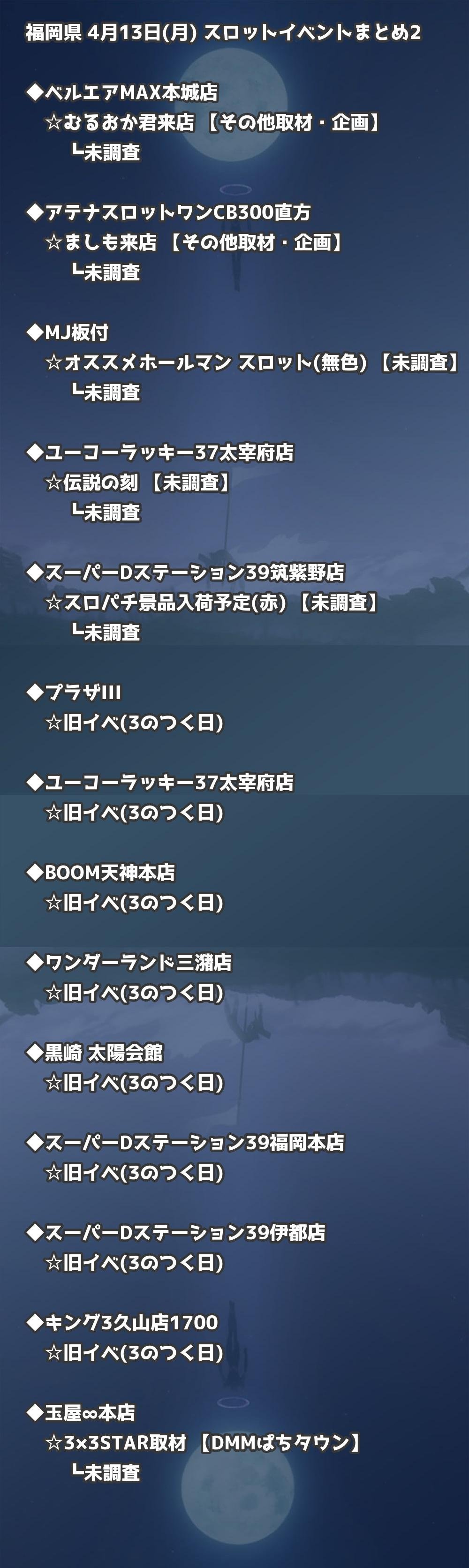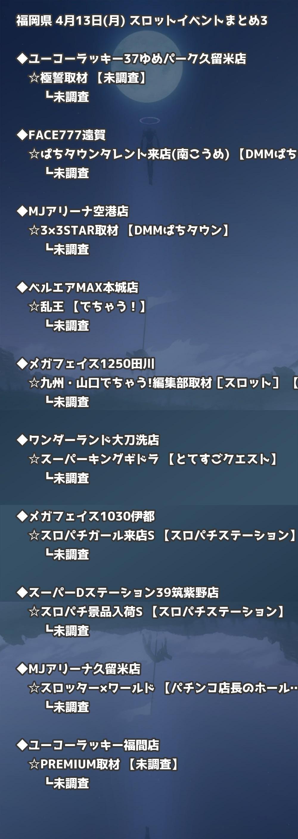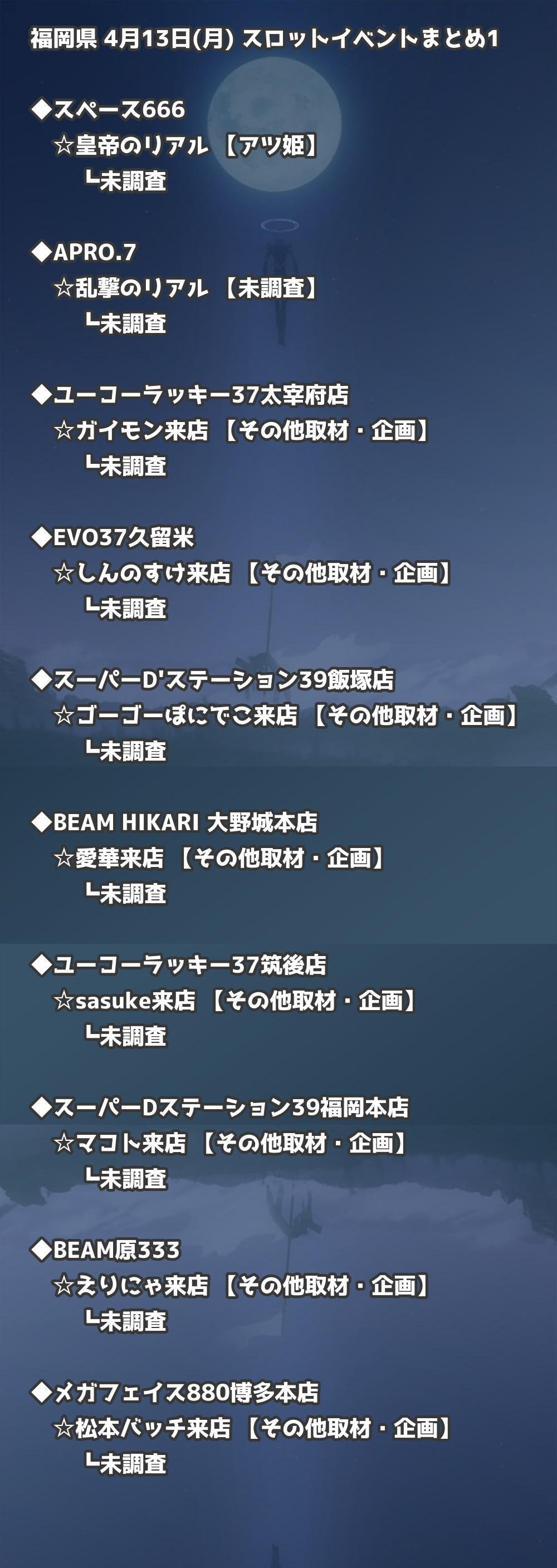 福岡県内のパチンコファンの皆様へ。4月13日(月)の博多・天神エリアを中心としたパチンコホールイベント取材まとめ記事です。