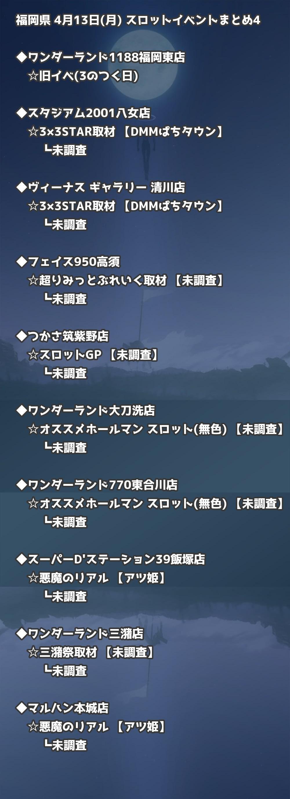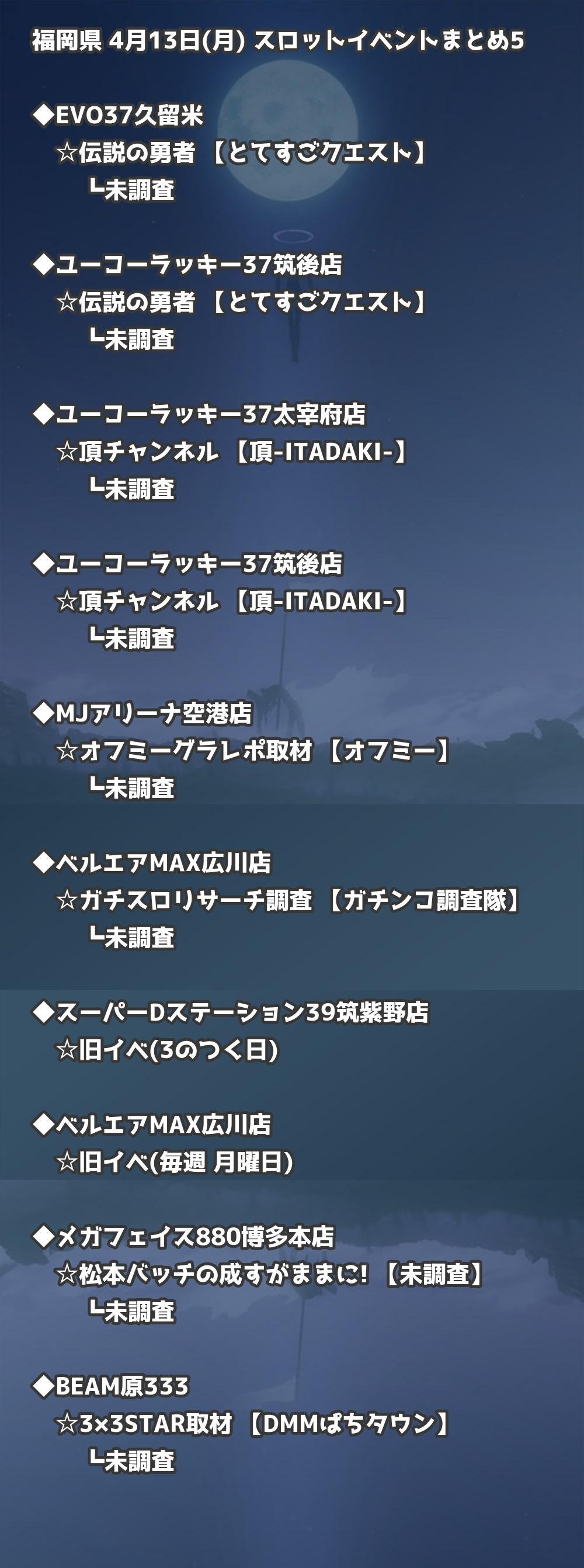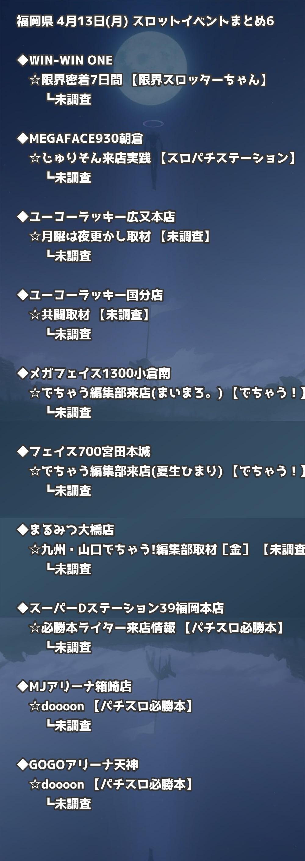福岡県内のパチンコファンの皆様へ。4月13日(月)の博多・天神エリアを中心としたパチンコホールイベント取材まとめ記事です。