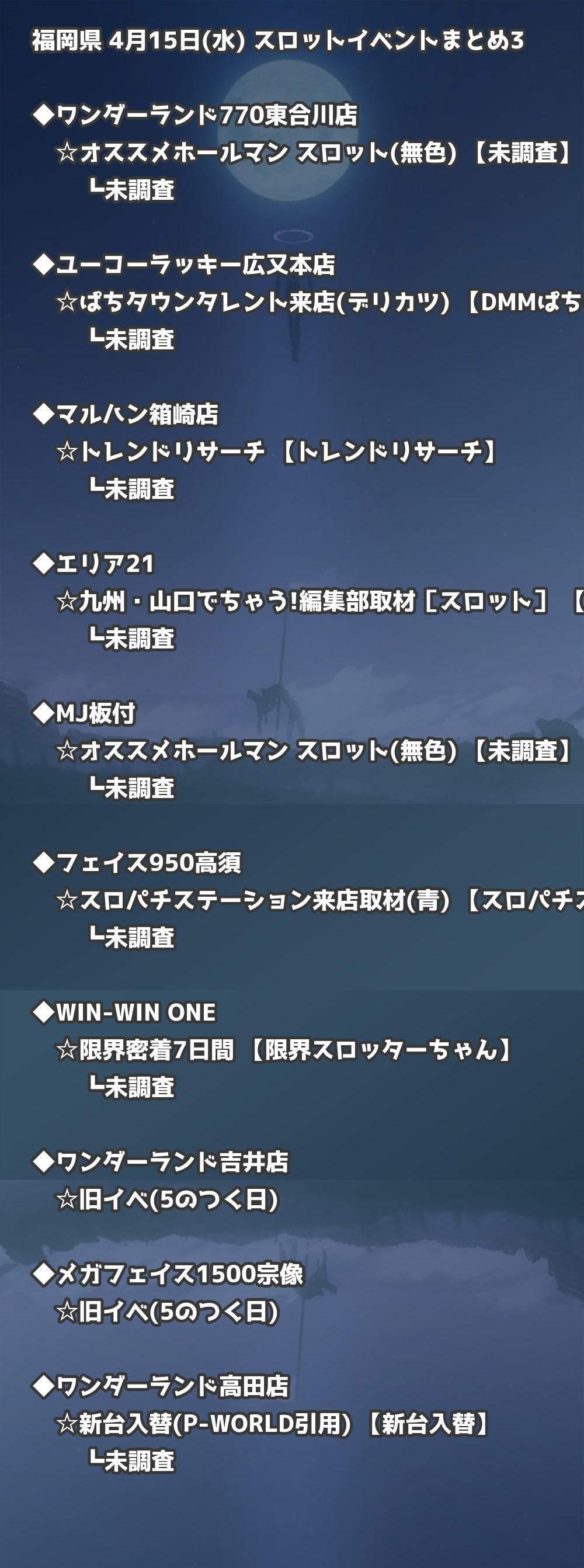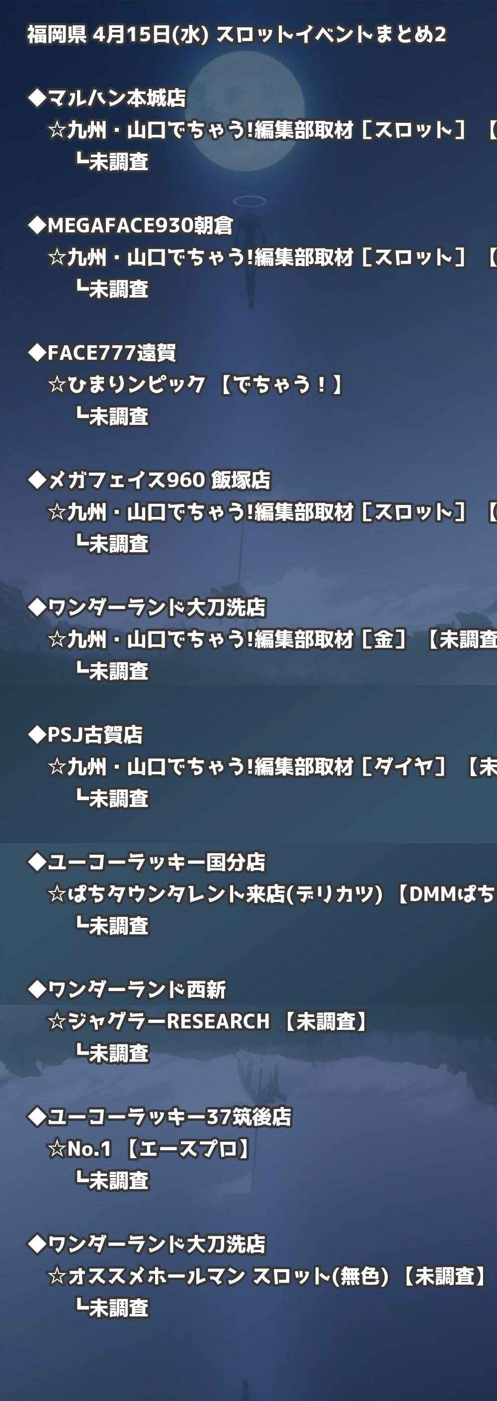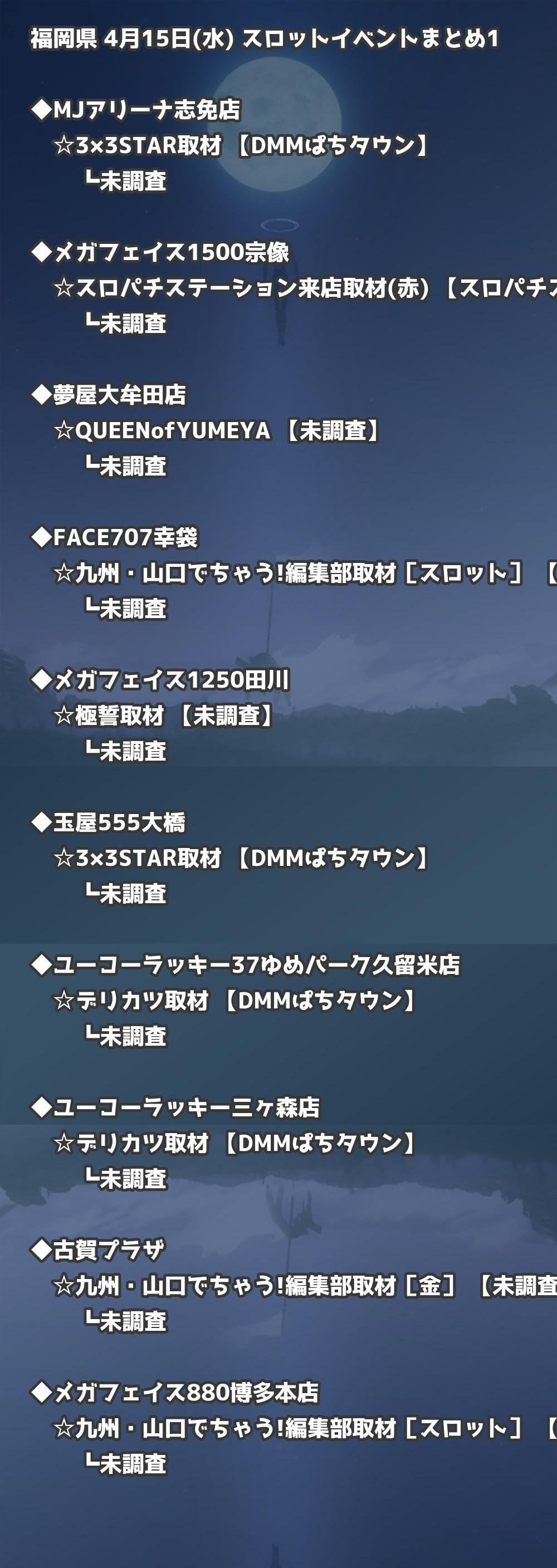📊 福岡県 4月15日(水) 勝てるパチンコ・スロット取材店舗一覧|おすすめ順