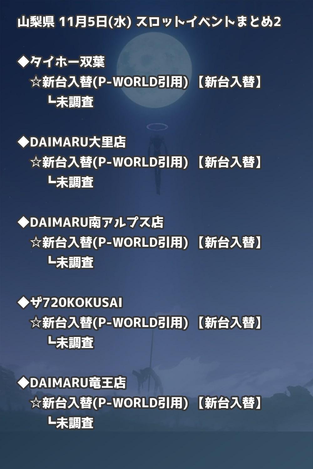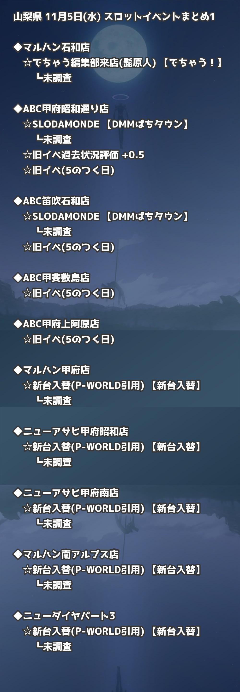 📊 山梨県 11月5日(水) 勝てるパチンコ・スロット取材店舗一覧|おすすめ順