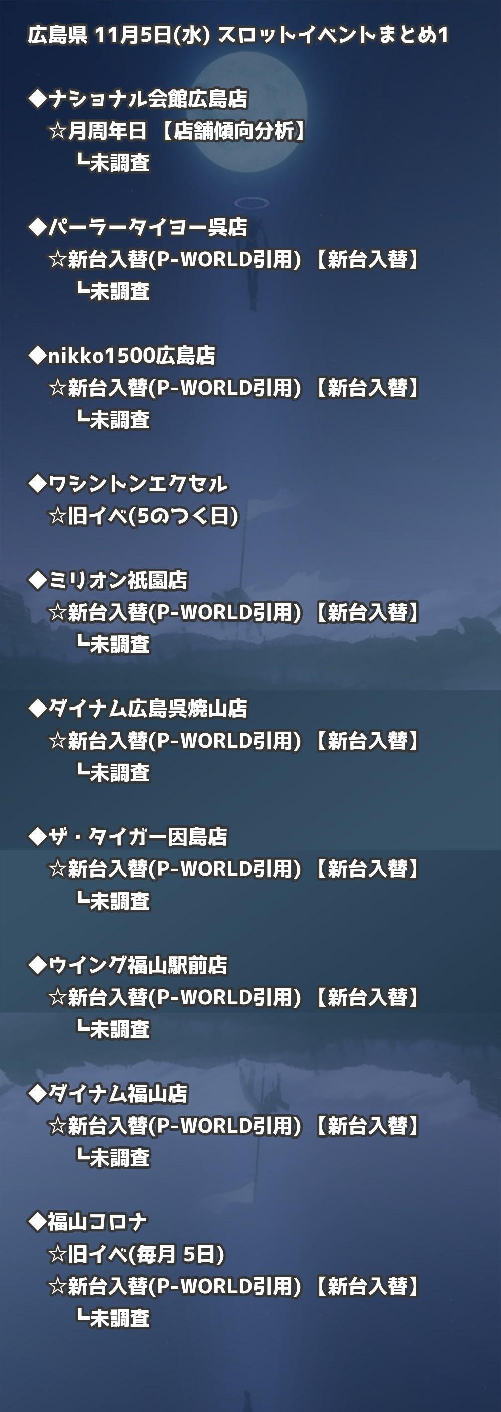 【広島県】11月5日(水) パチンコホールイベント取材まとめ記事です。