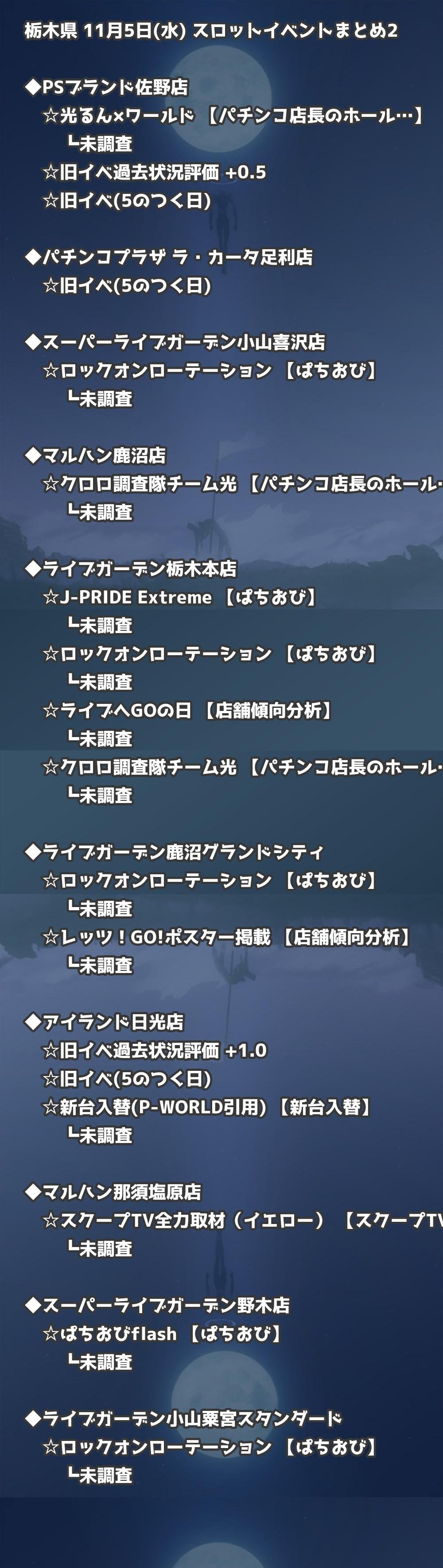 【栃木県】11月5日(水) パチンコホールイベント取材まとめ記事です。