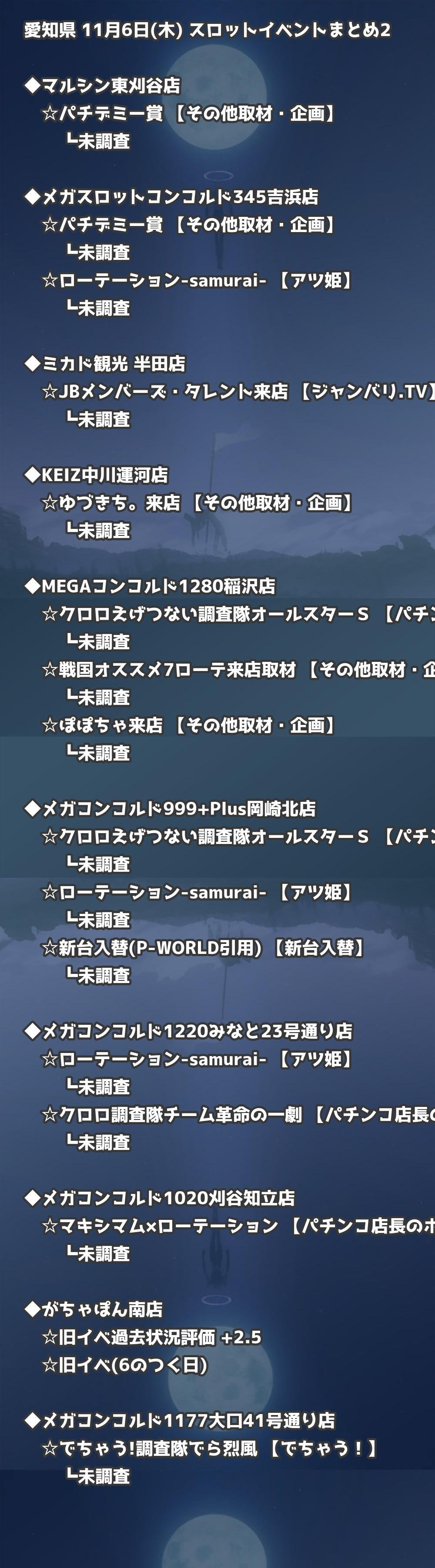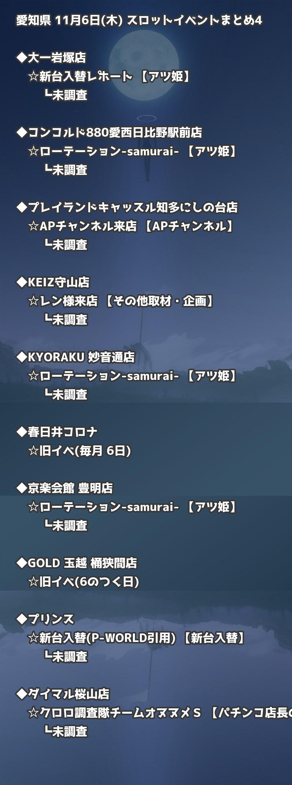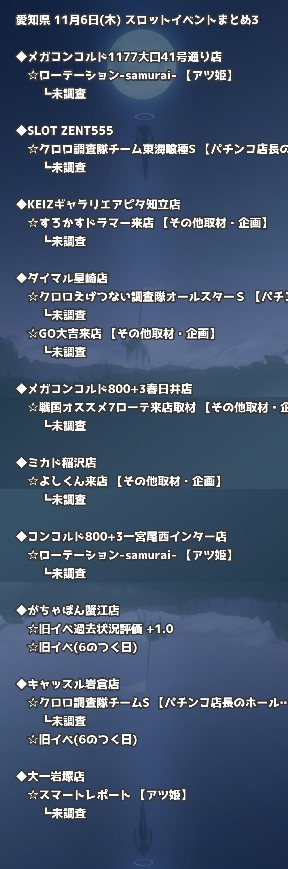 📊 愛知県 11月6日(木) 勝てるパチンコ・スロット取材店舗一覧|おすすめ順