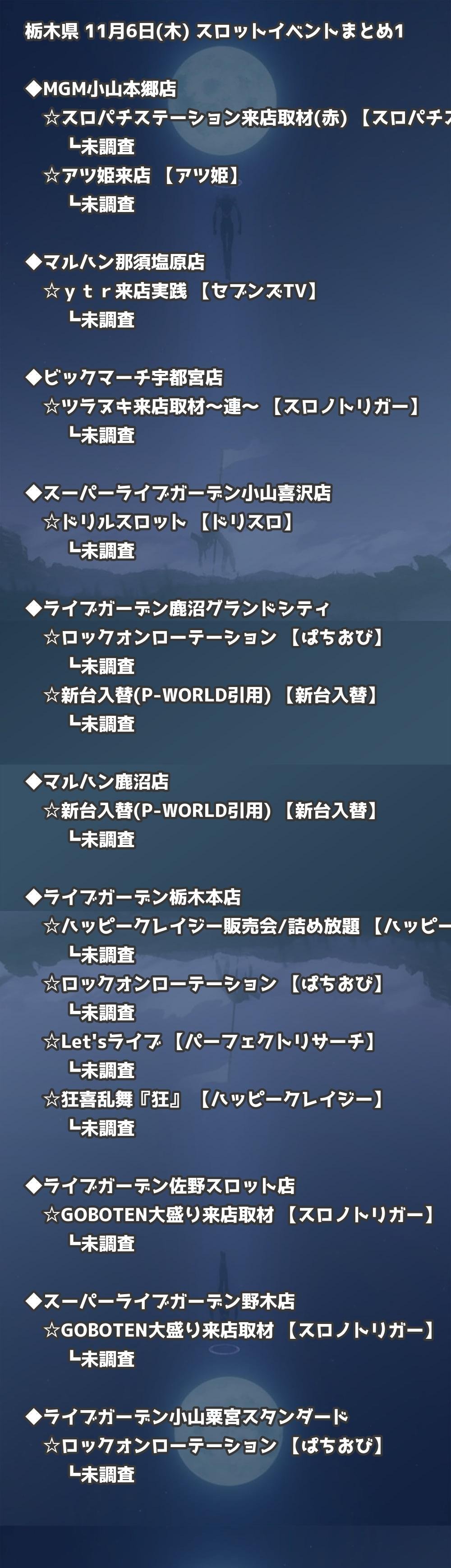 【栃木県】11月6日(木) パチンコホールイベント取材まとめ記事です。