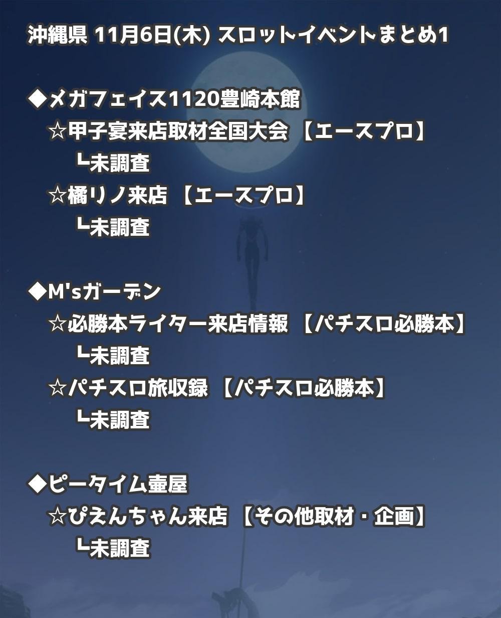 【沖縄県】11月6日(木) パチンコホールイベント取材まとめ記事です。