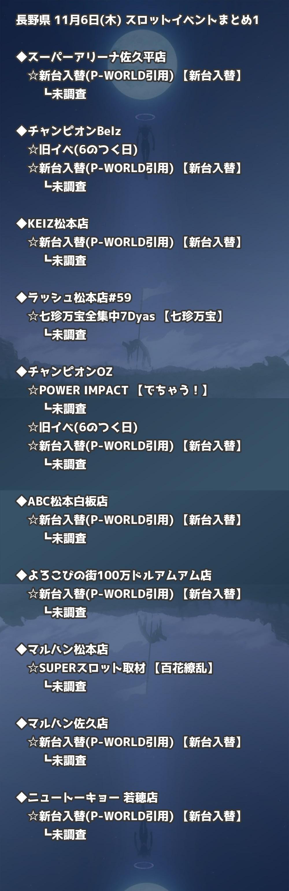 📊 長野県 11月6日(木) 勝てるパチンコ・スロット取材店舗一覧|おすすめ順