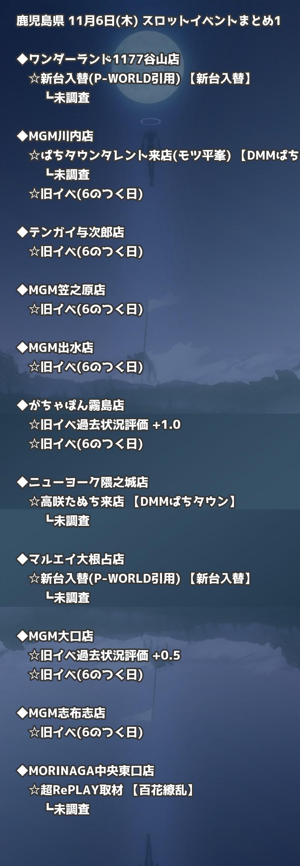 【鹿児島県】11月6日(木) パチンコホールイベント取材まとめ記事です。