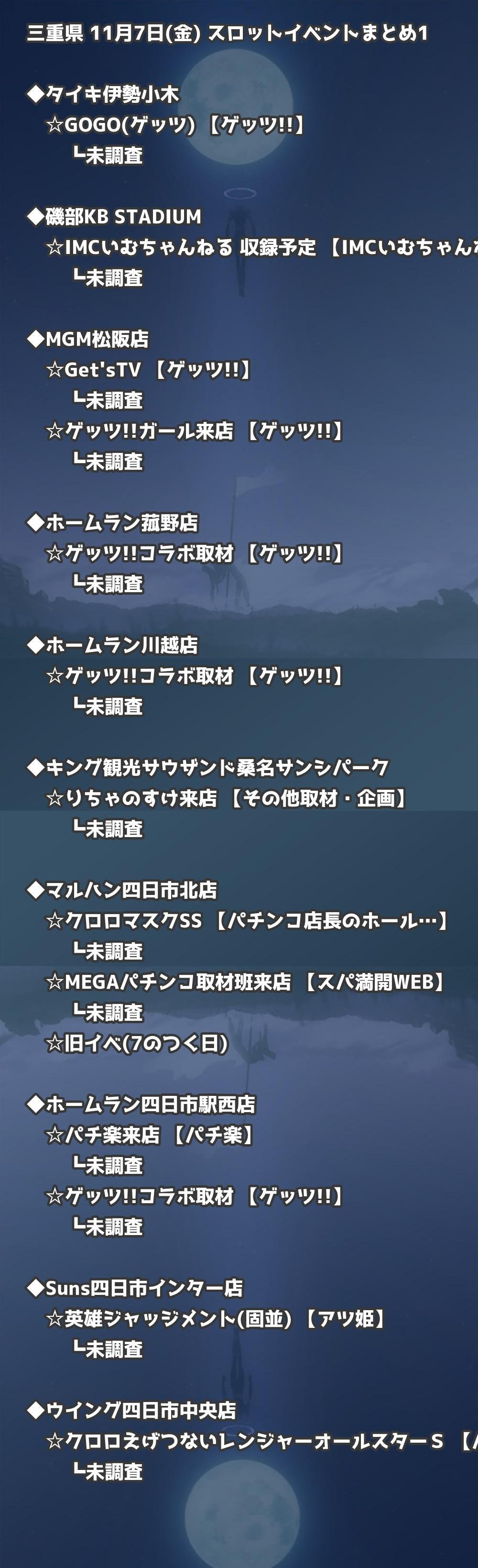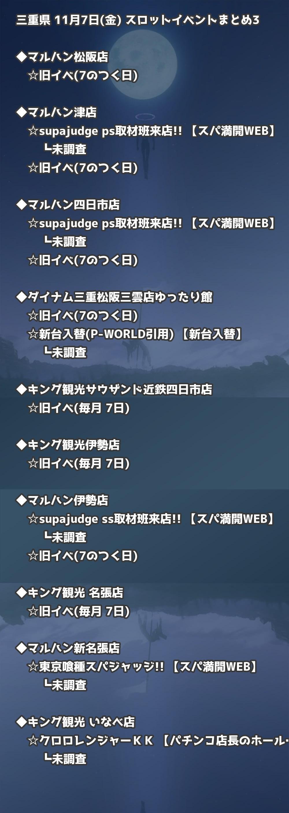 【三重県】11月7日(金) パチンコホールイベント取材まとめ記事です。
