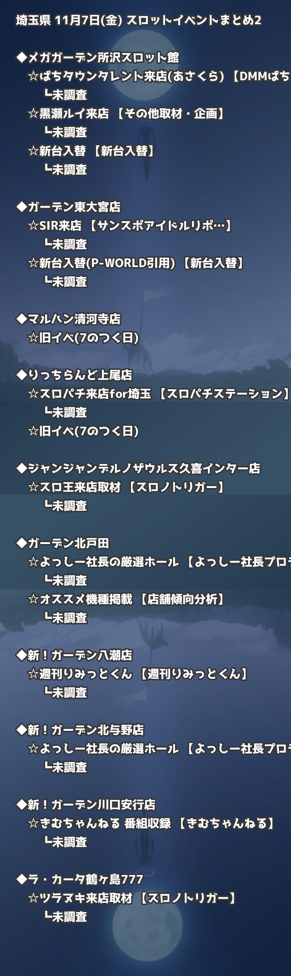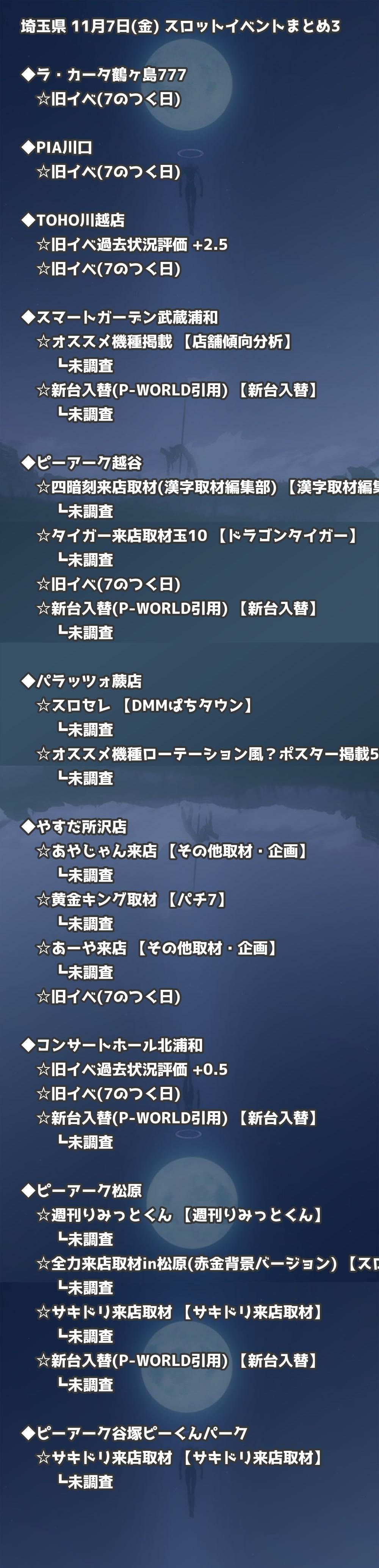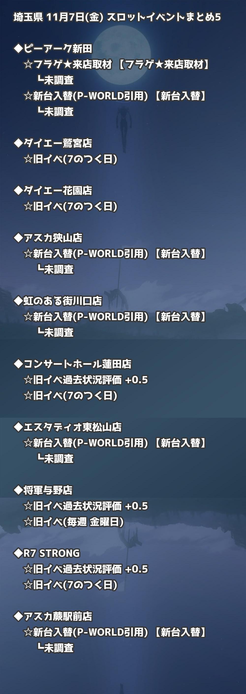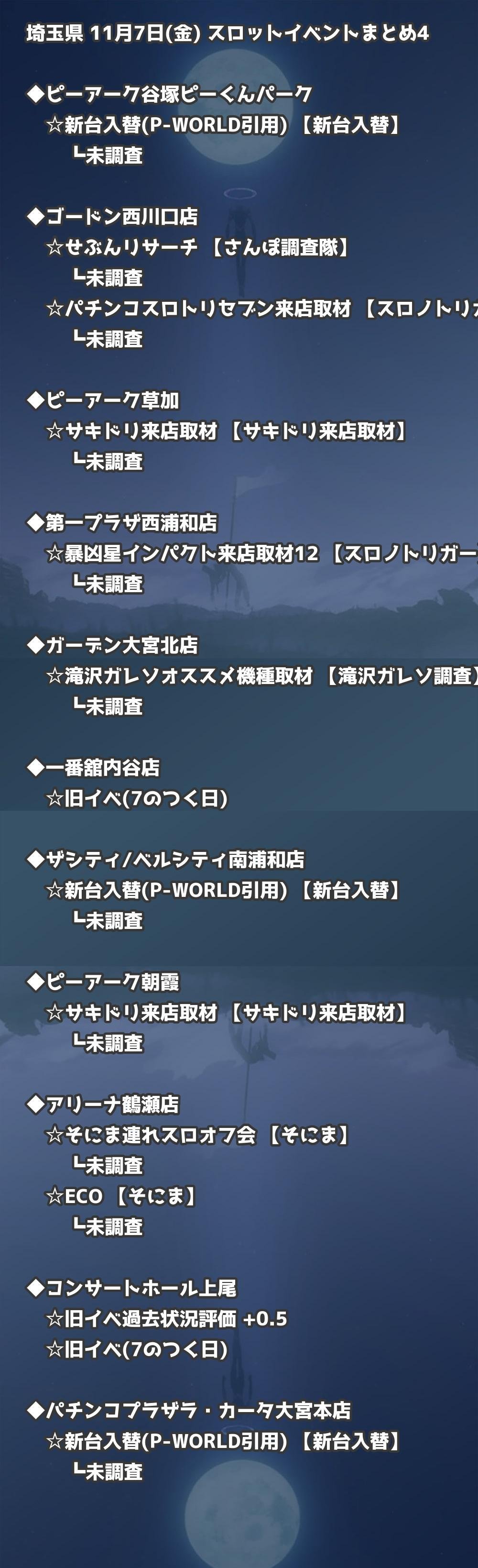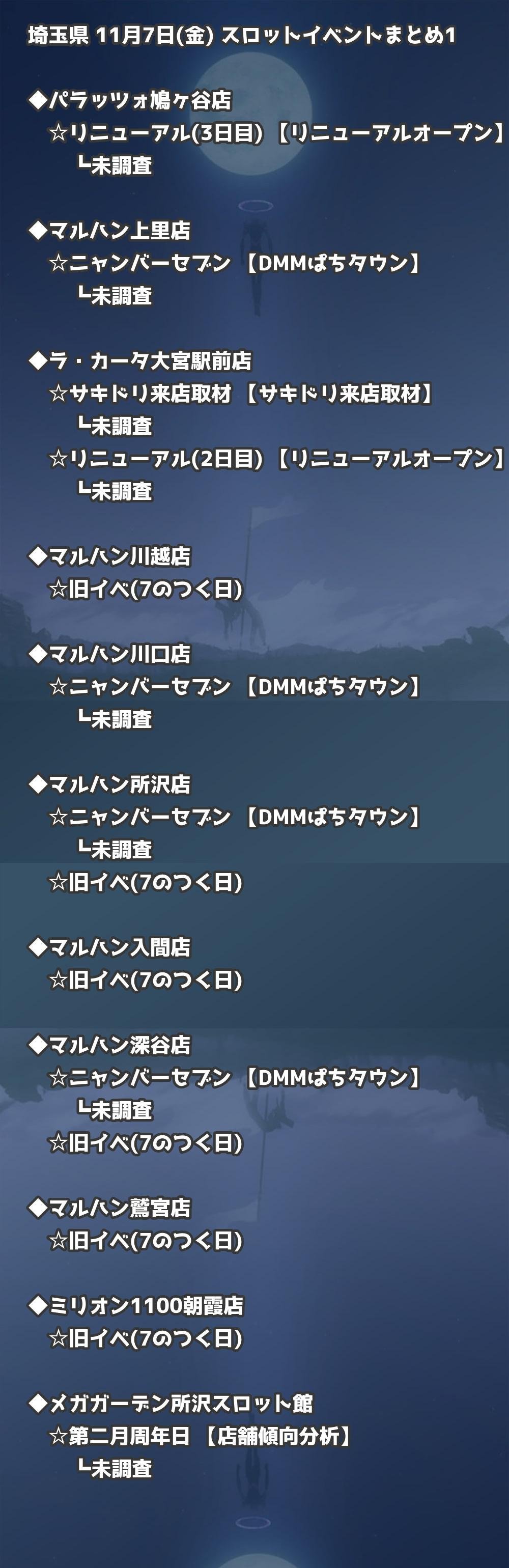 【埼玉県】11月7日(金) パチンコホールイベント取材まとめ記事です。