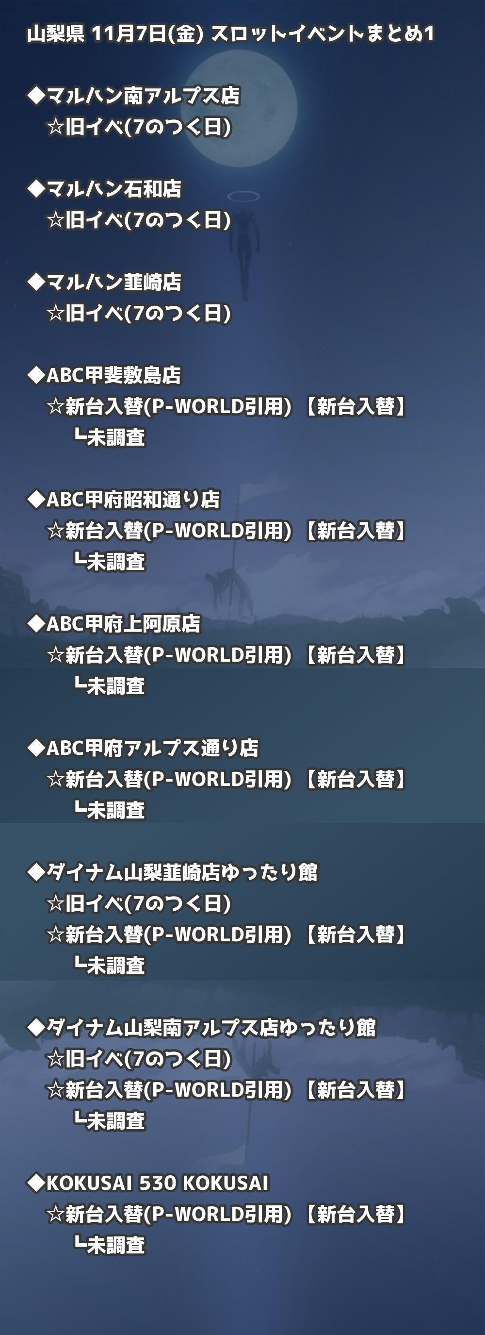 📊 山梨県 11月7日(金) 勝てるパチンコ・スロット取材店舗一覧|おすすめ順