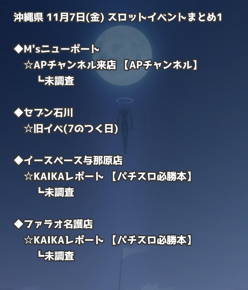 【沖縄県】11月7日(金) パチンコホールイベント取材まとめ記事です。