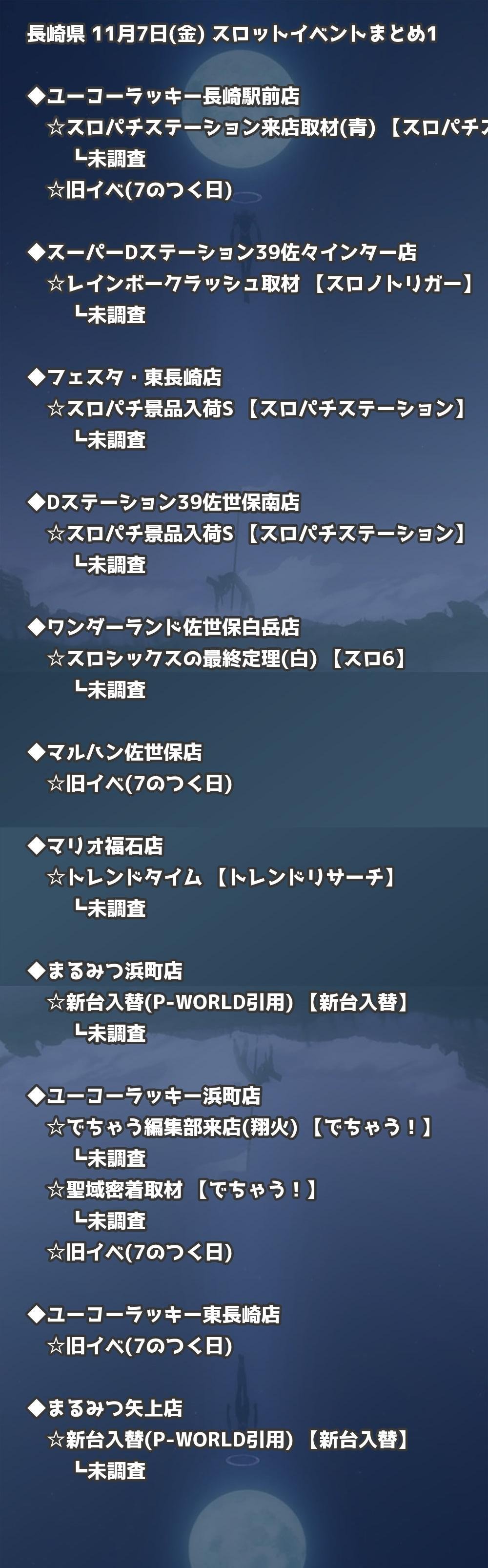 【長崎県】11月7日(金) パチンコホールイベント取材まとめ記事です。