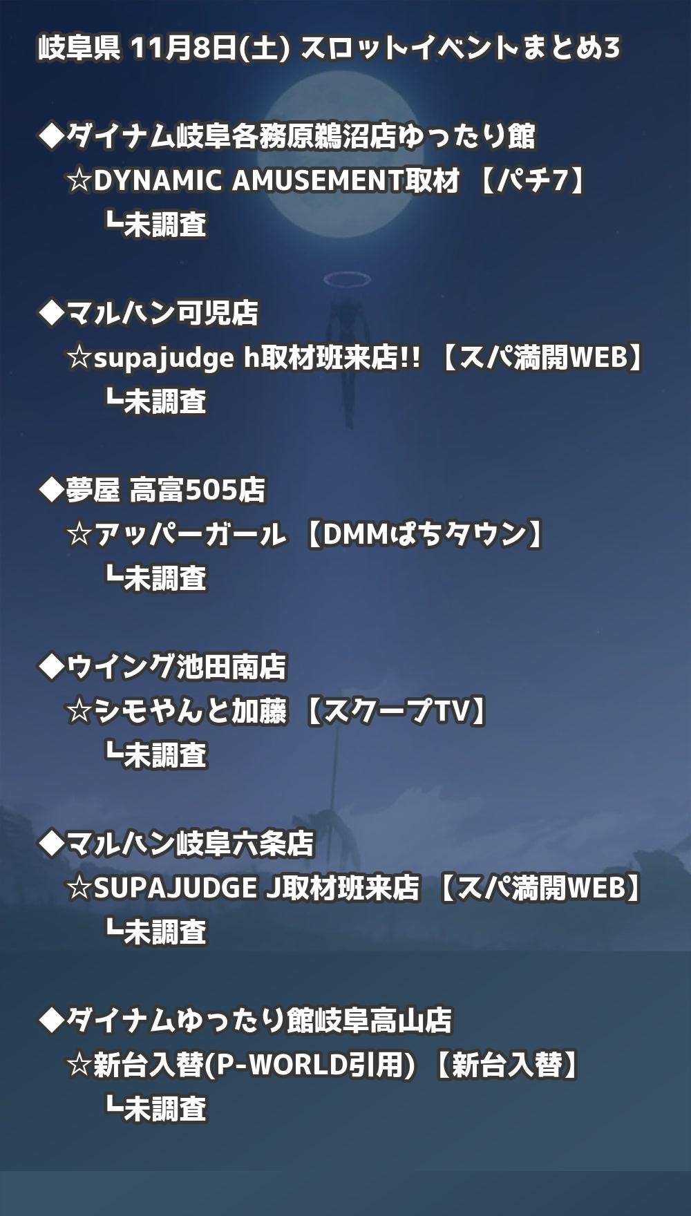 📊 岐阜県 11月8日(土) 勝てるパチンコ・スロット取材店舗一覧|おすすめ順