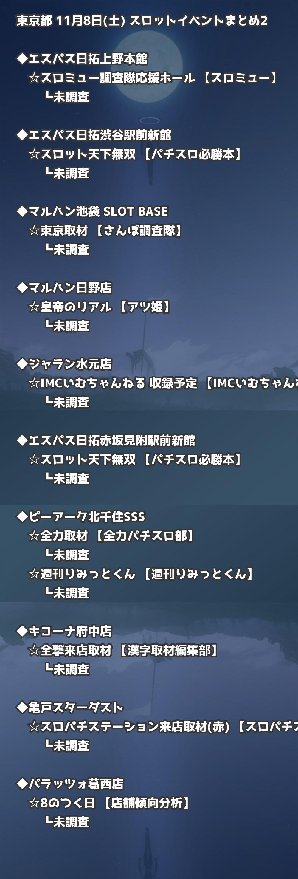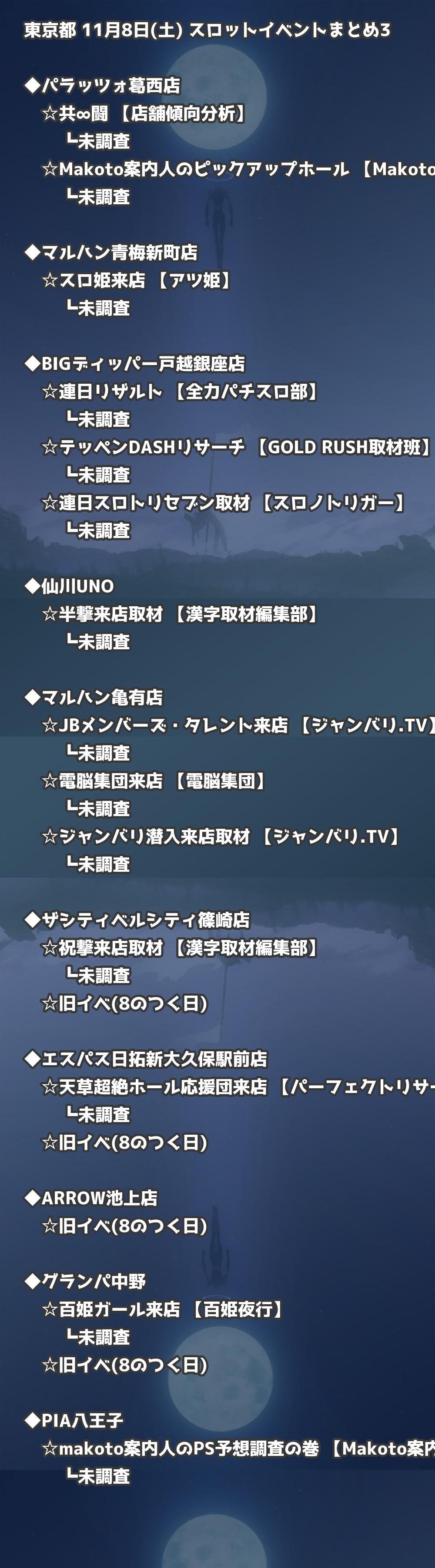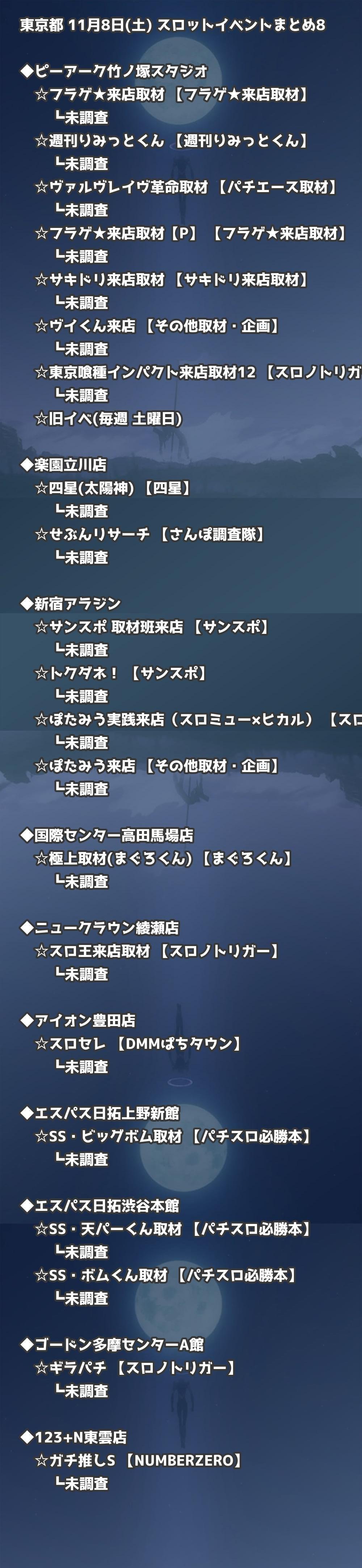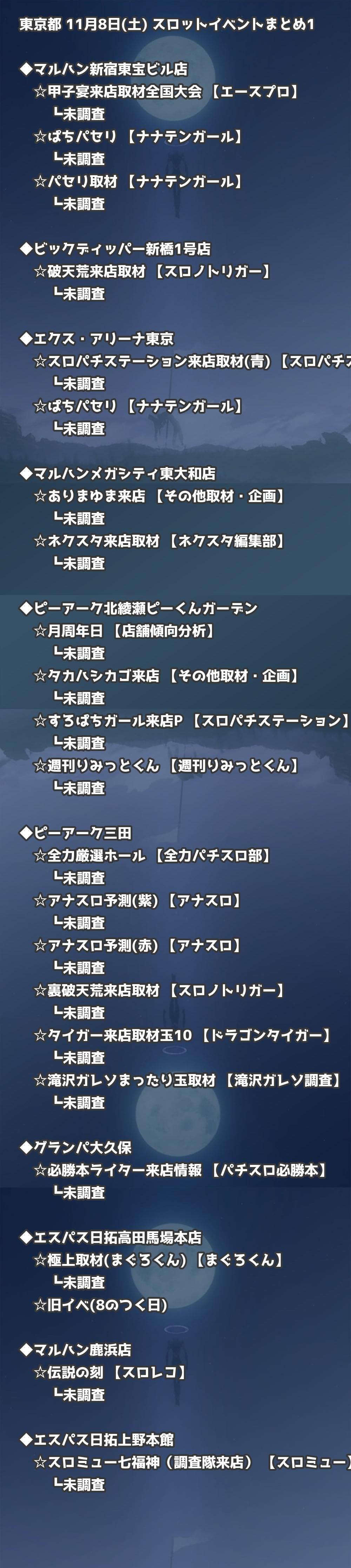📊 東京都 11月8日(土) 勝てるパチンコ・スロット取材店舗一覧|おすすめ順