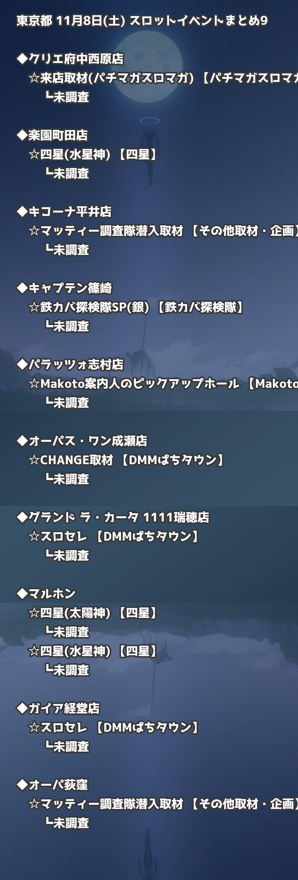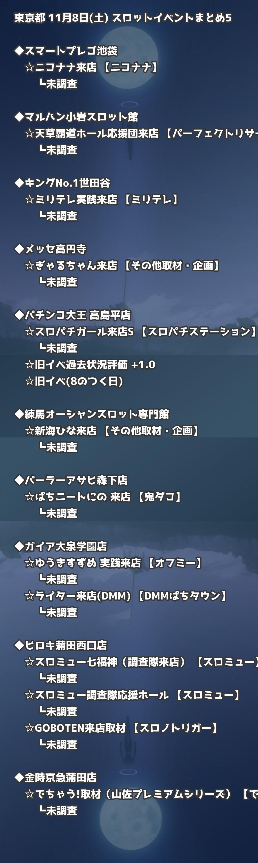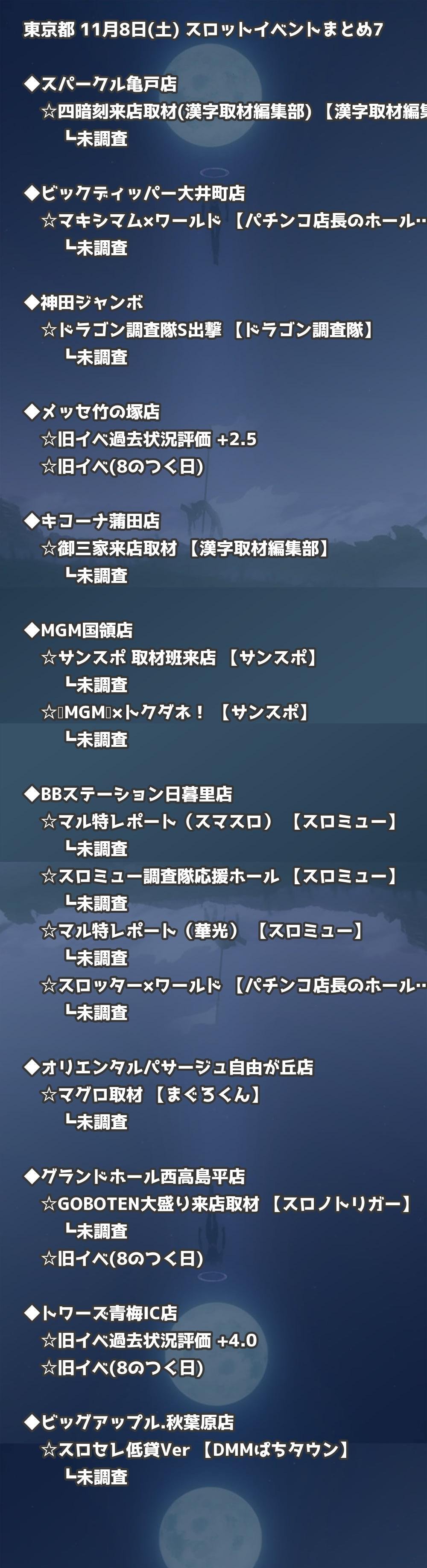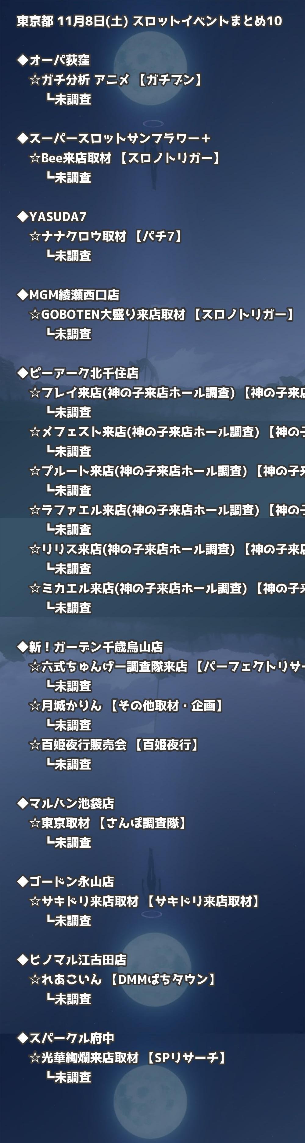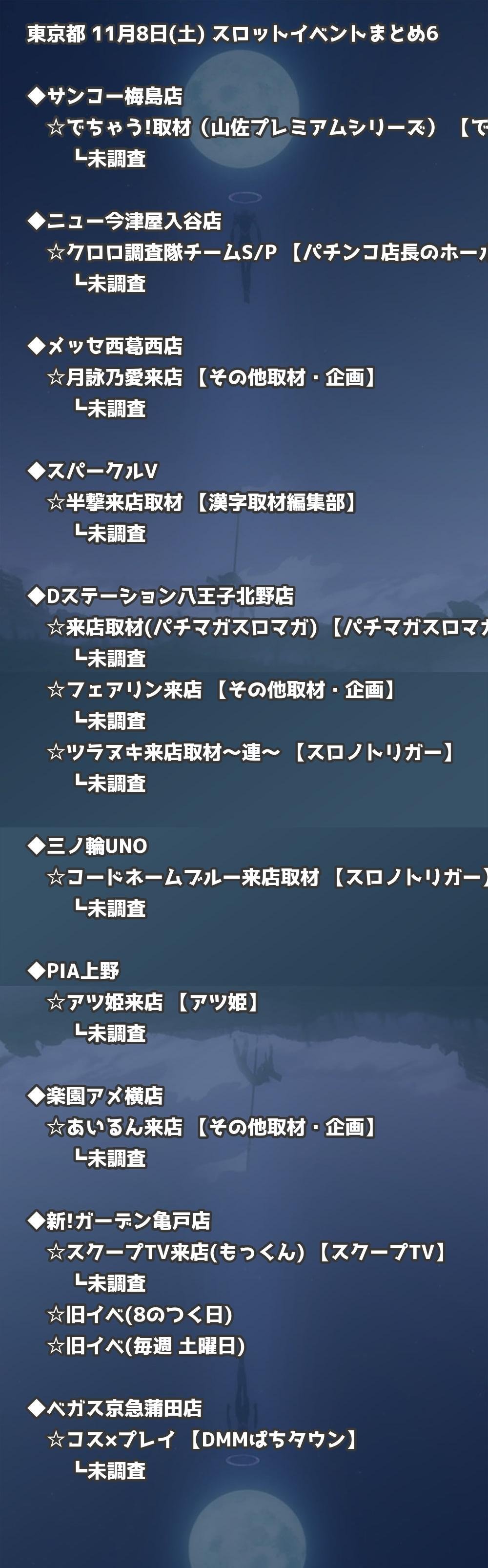 📊 東京都 11月8日(土) 勝てるパチンコ・スロット取材店舗一覧|おすすめ順