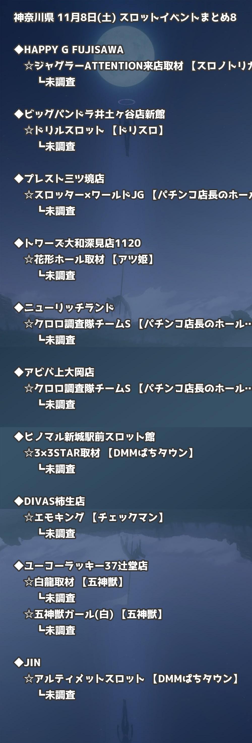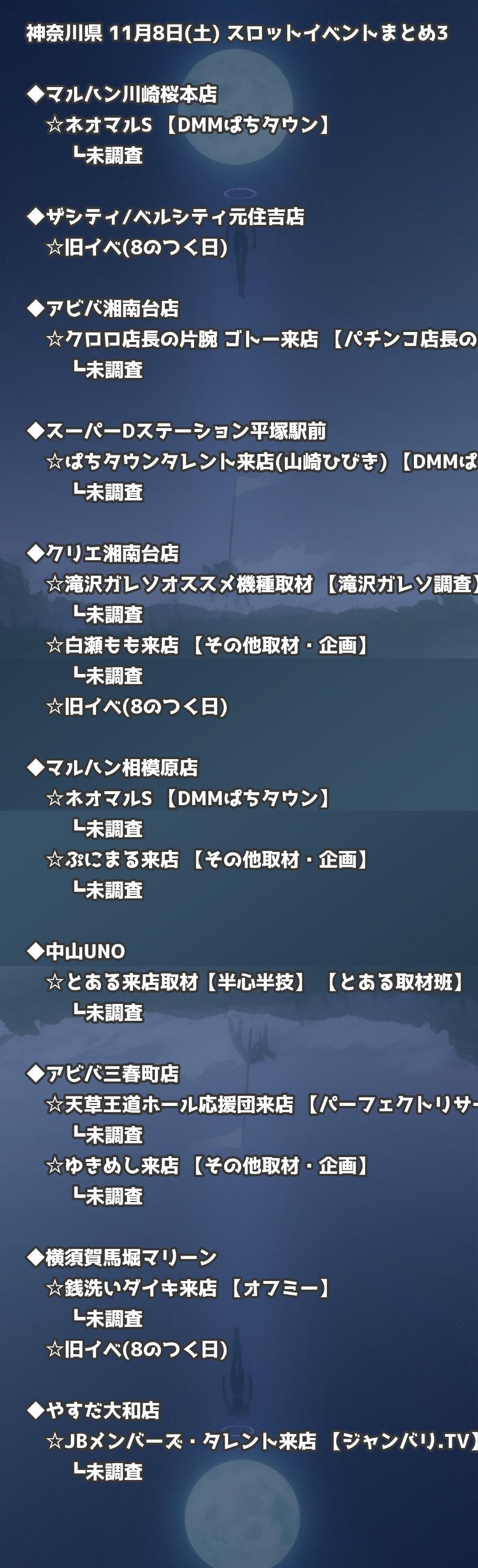 📊 神奈川県 11月8日(土) 勝てるパチンコ・スロット取材店舗一覧|おすすめ順