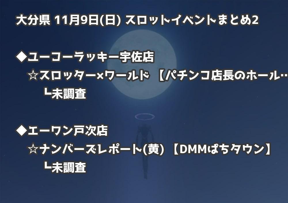 【大分県】11月9日(日) パチンコホールイベント取材まとめ記事です。