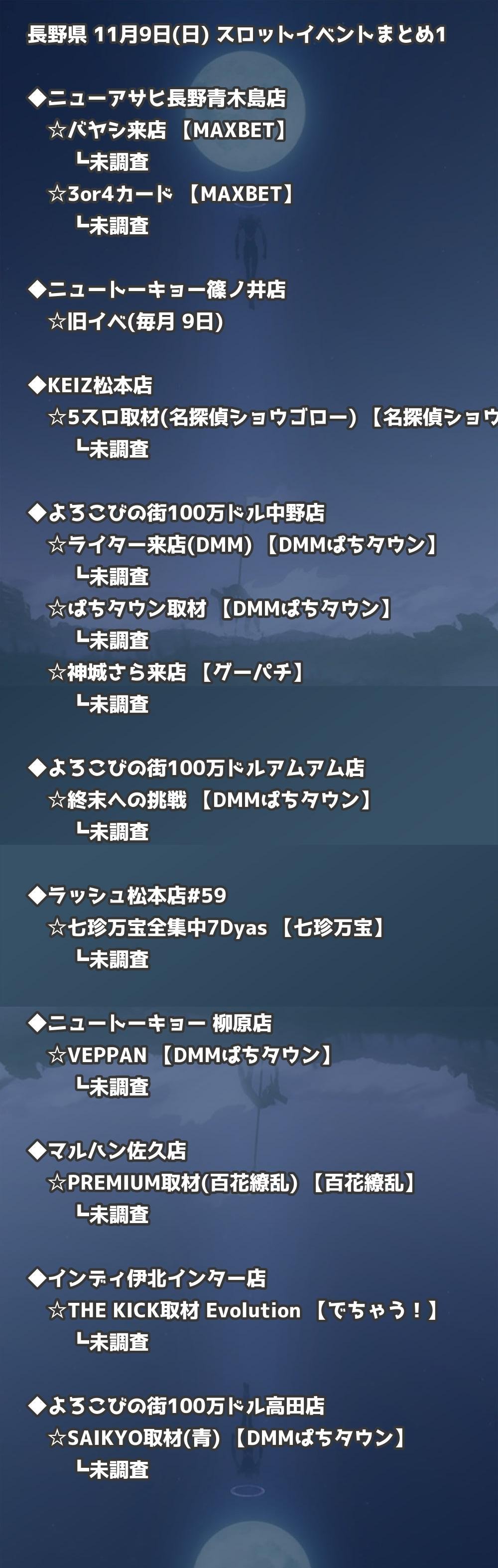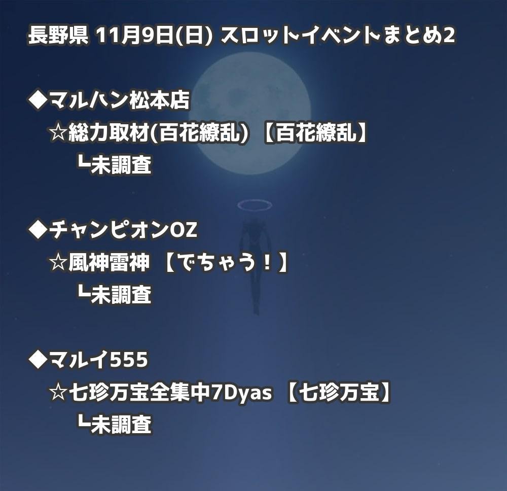 【長野県】11月9日(日) パチンコホールイベント取材まとめ記事です。