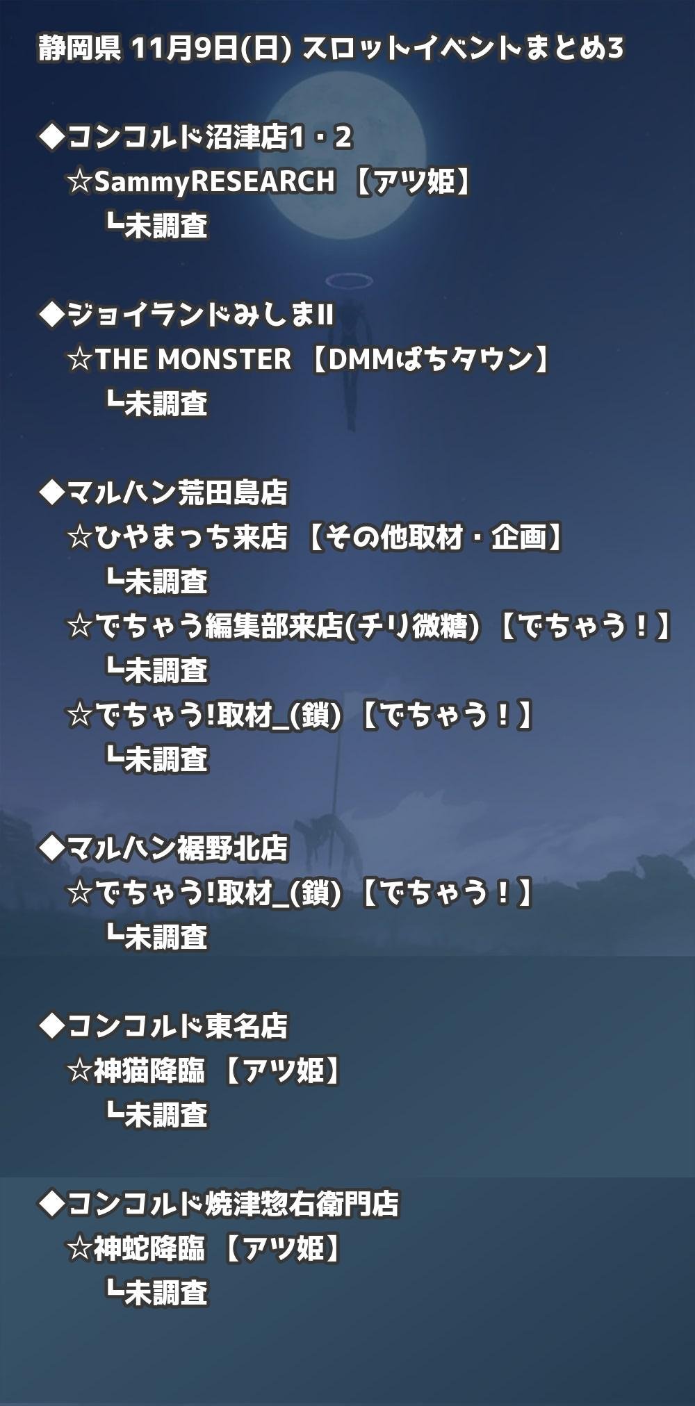 📊 静岡県 11月9日(日) 勝てるパチンコ・スロット取材店舗一覧|おすすめ順
