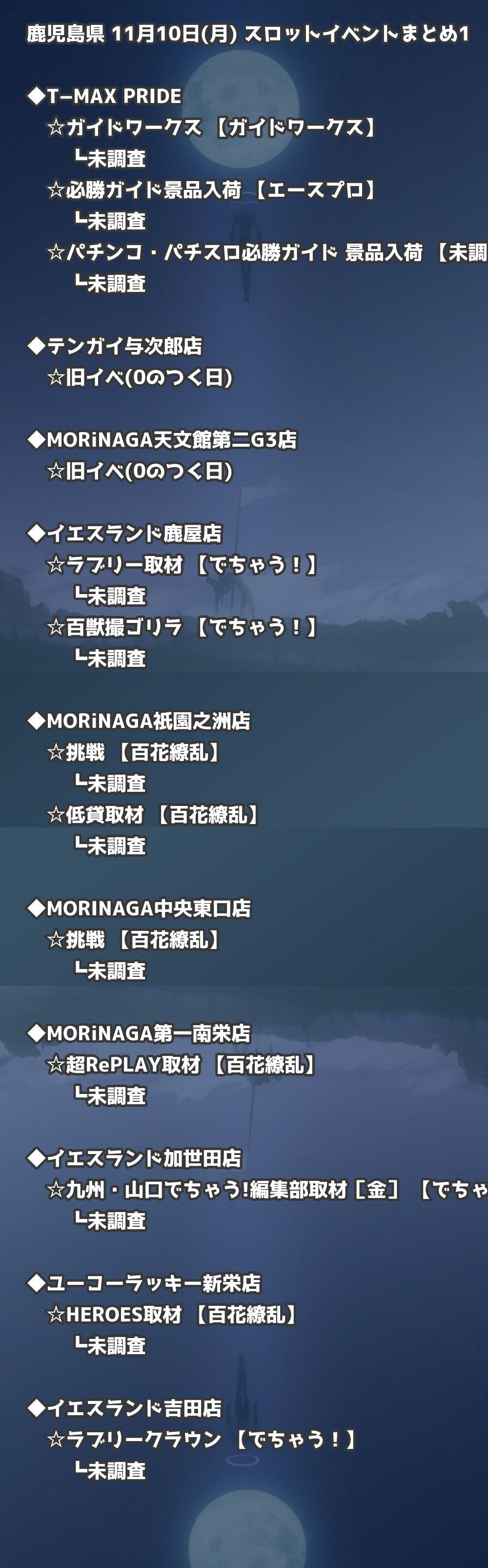 【鹿児島県】11月10日(月) パチンコホールイベント取材まとめ記事です。
