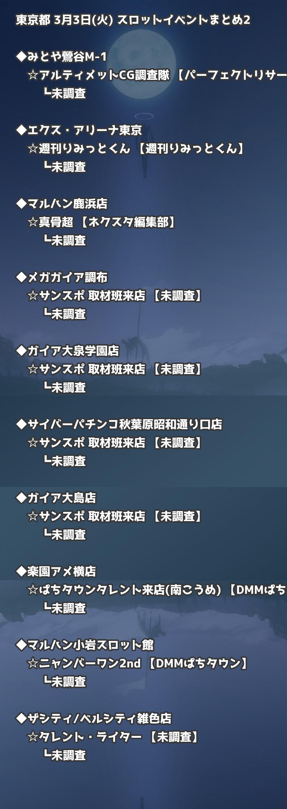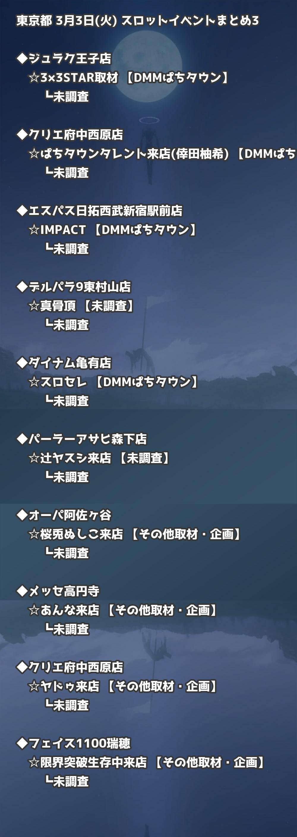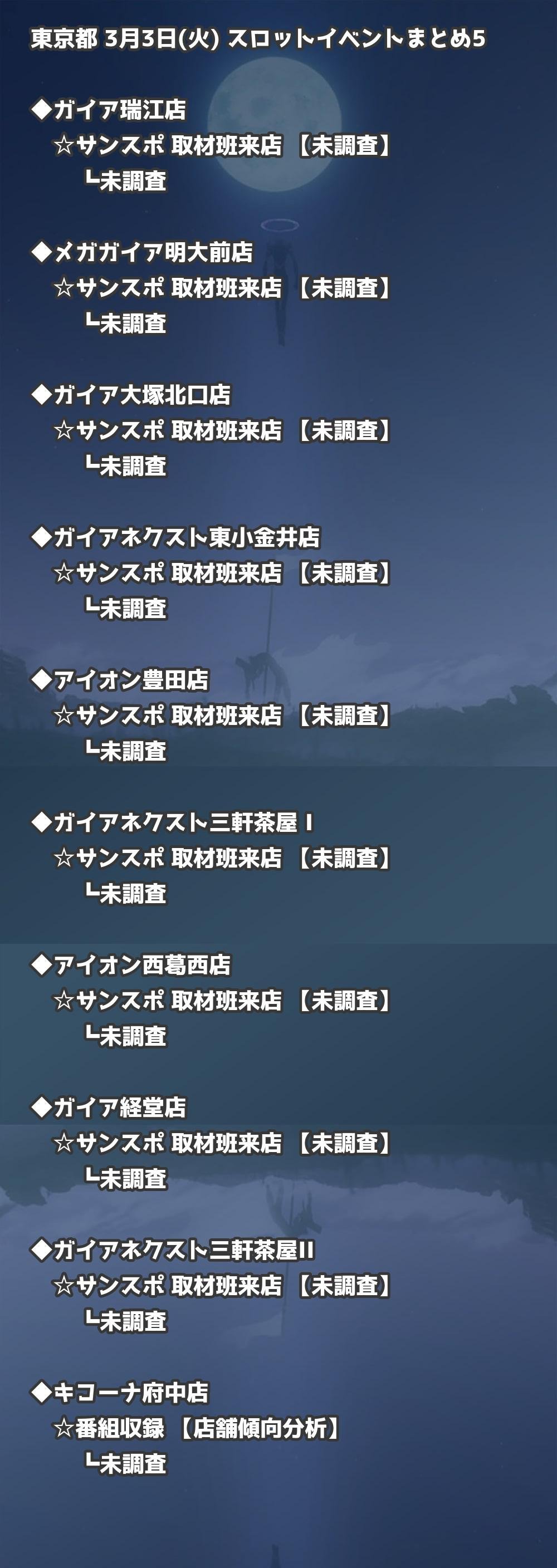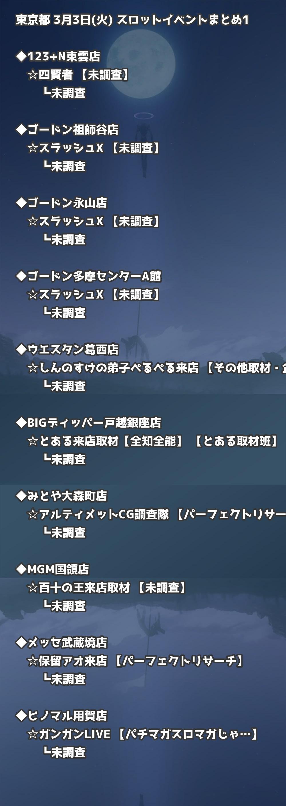 📊 東京都 3月3日(火) 勝てるパチンコ・スロット取材店舗一覧|おすすめ順