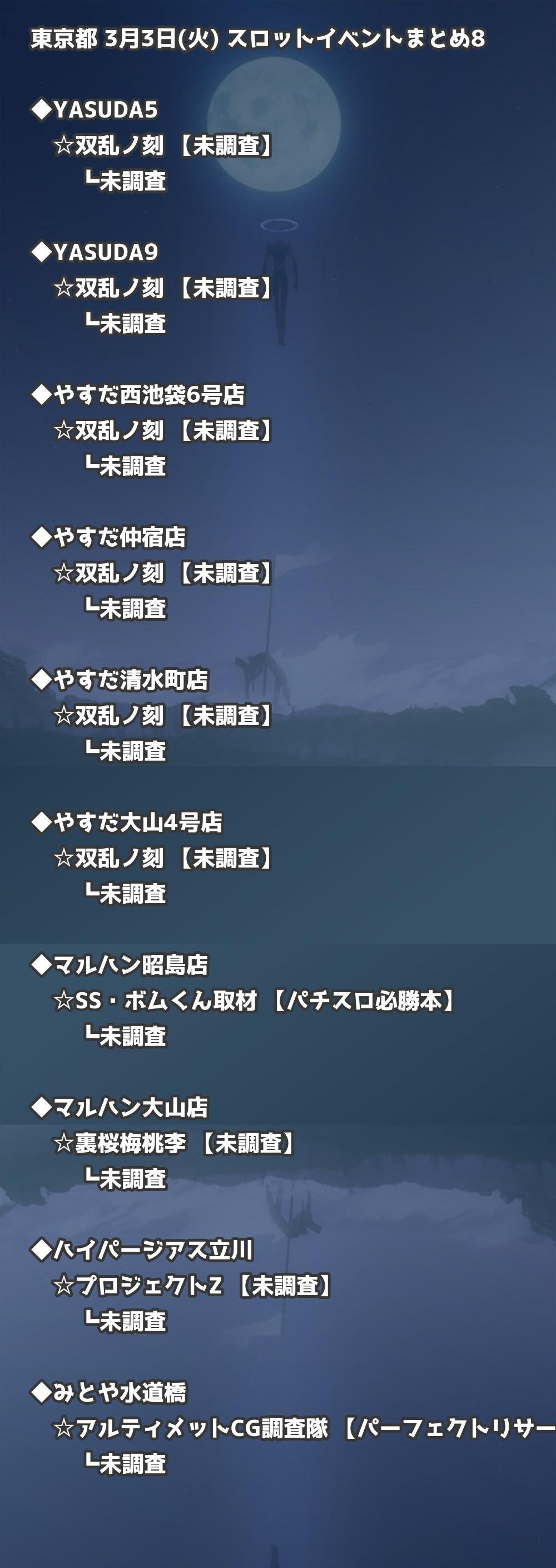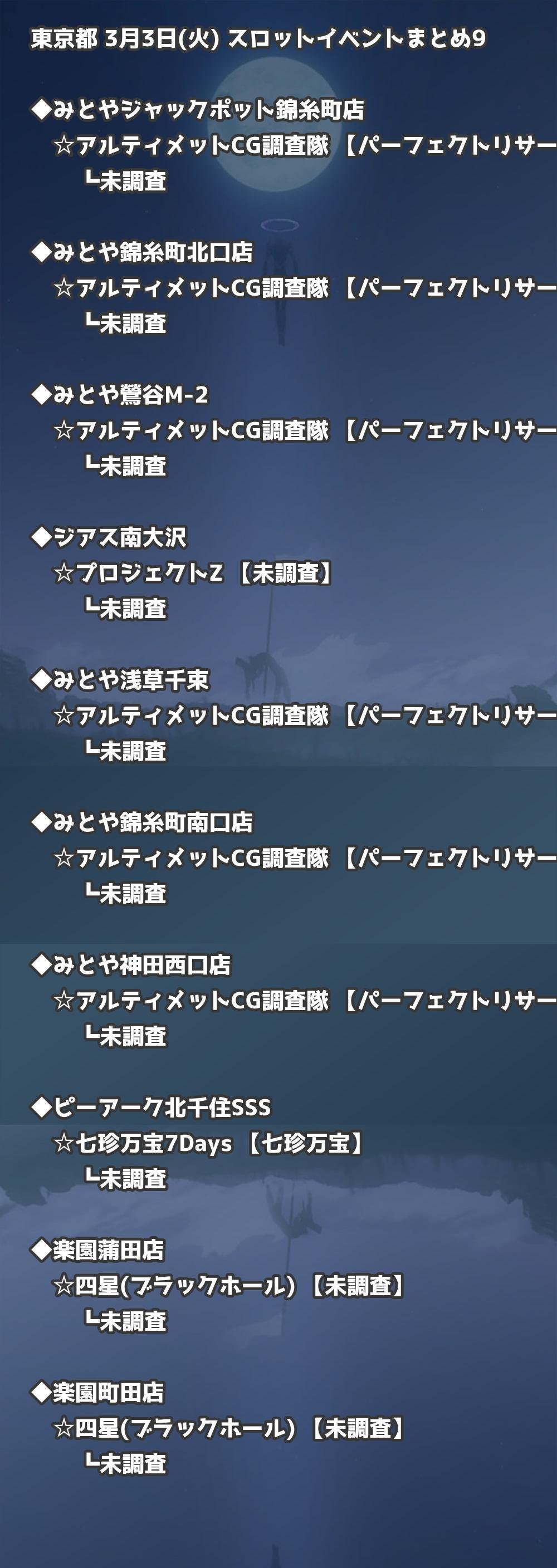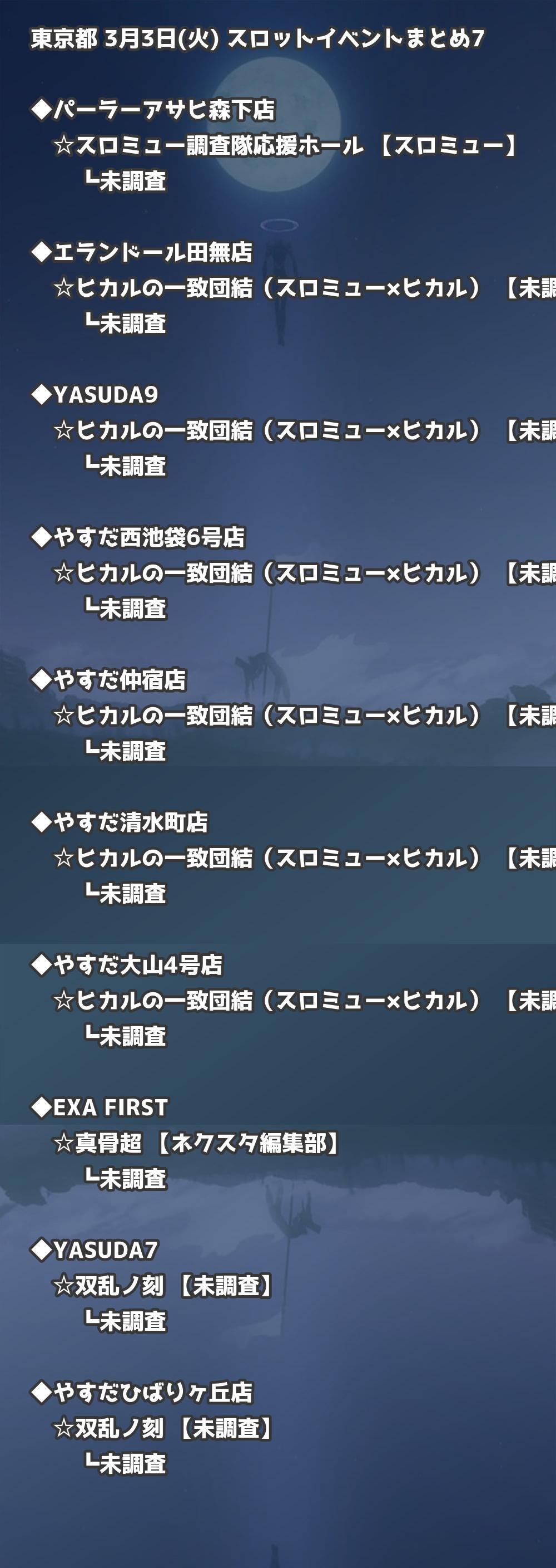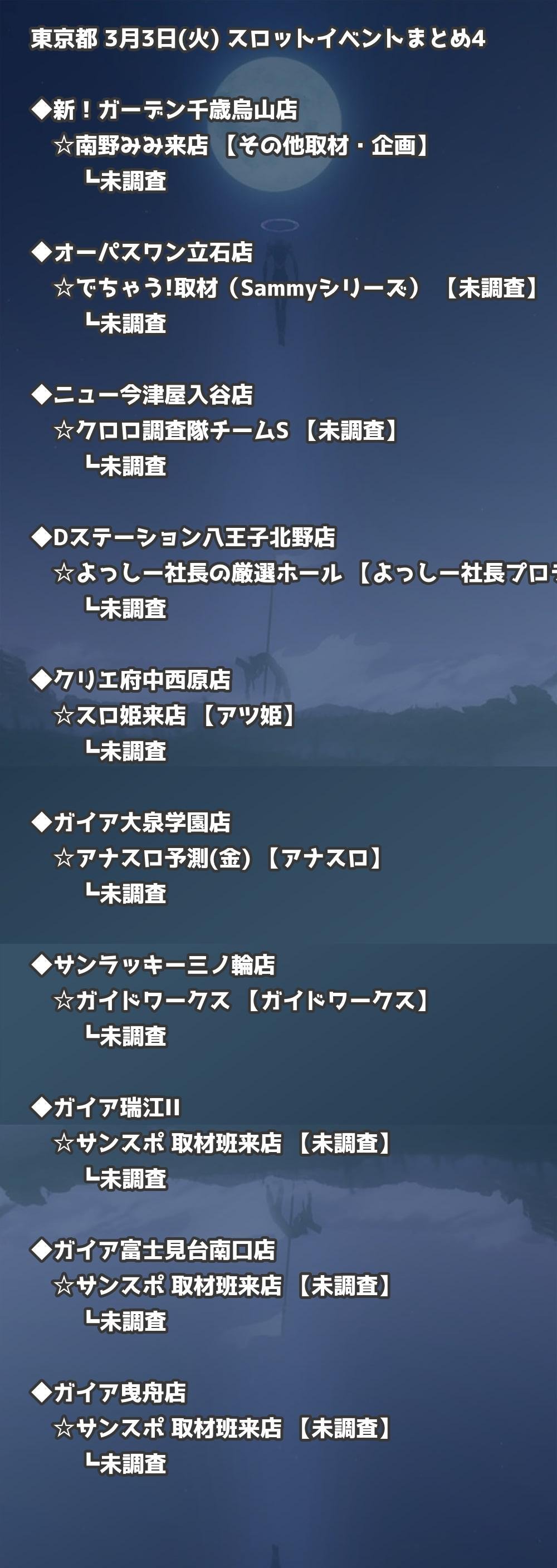 📊 東京都 3月3日(火) 勝てるパチンコ・スロット取材店舗一覧|おすすめ順