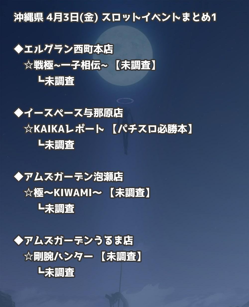 【沖縄県】4月3日(金) パチンコホールイベント取材まとめ記事です。