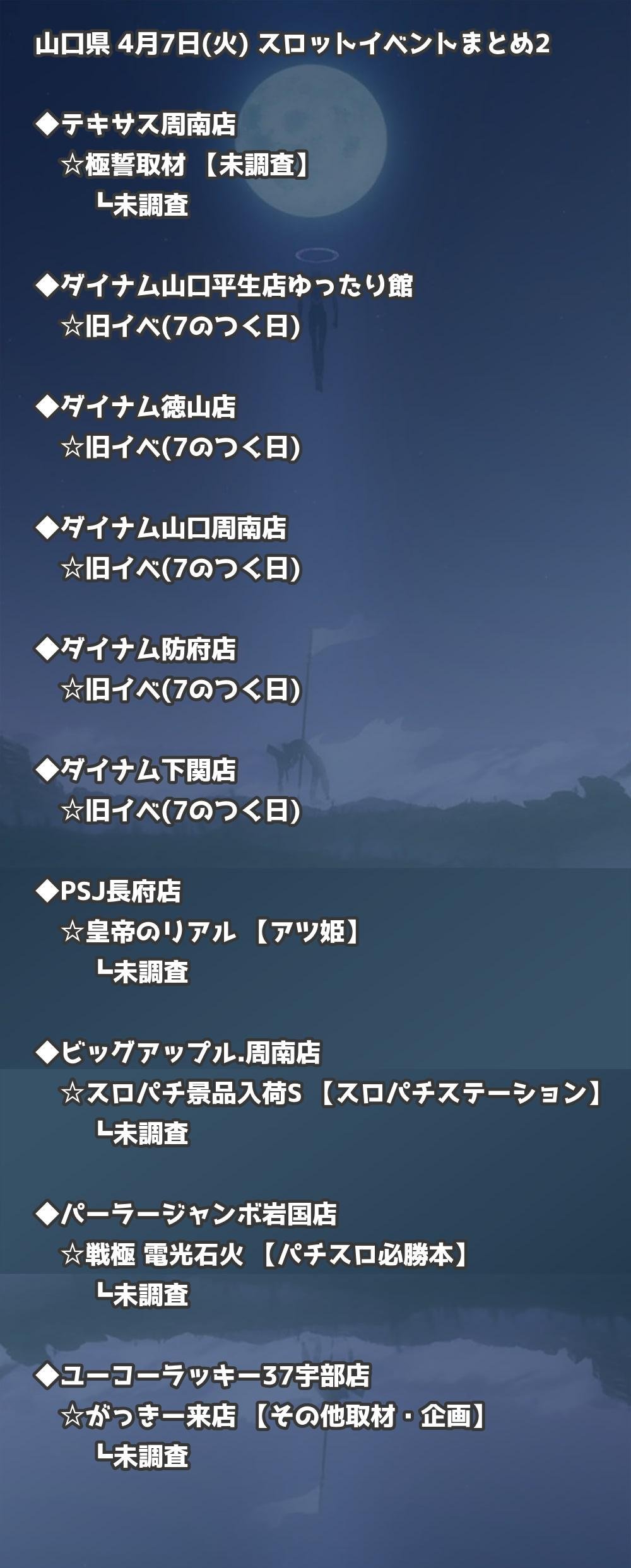 【山口県】4月7日(火) パチンコホールイベント取材まとめ記事です。