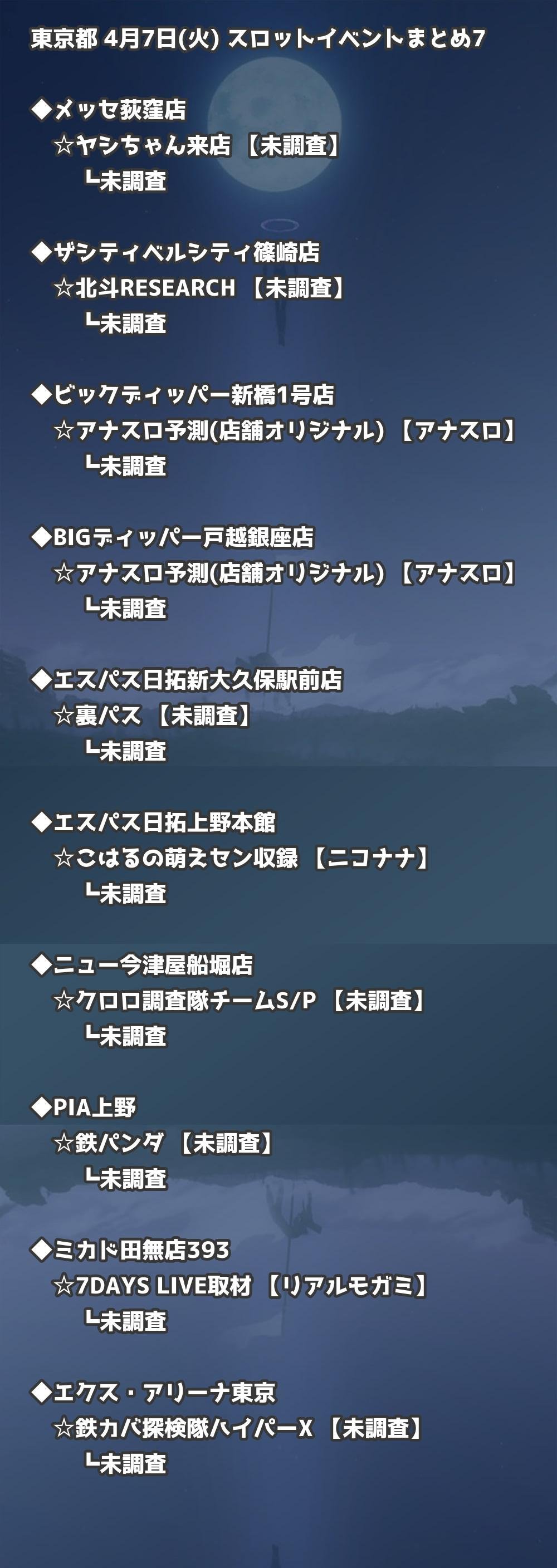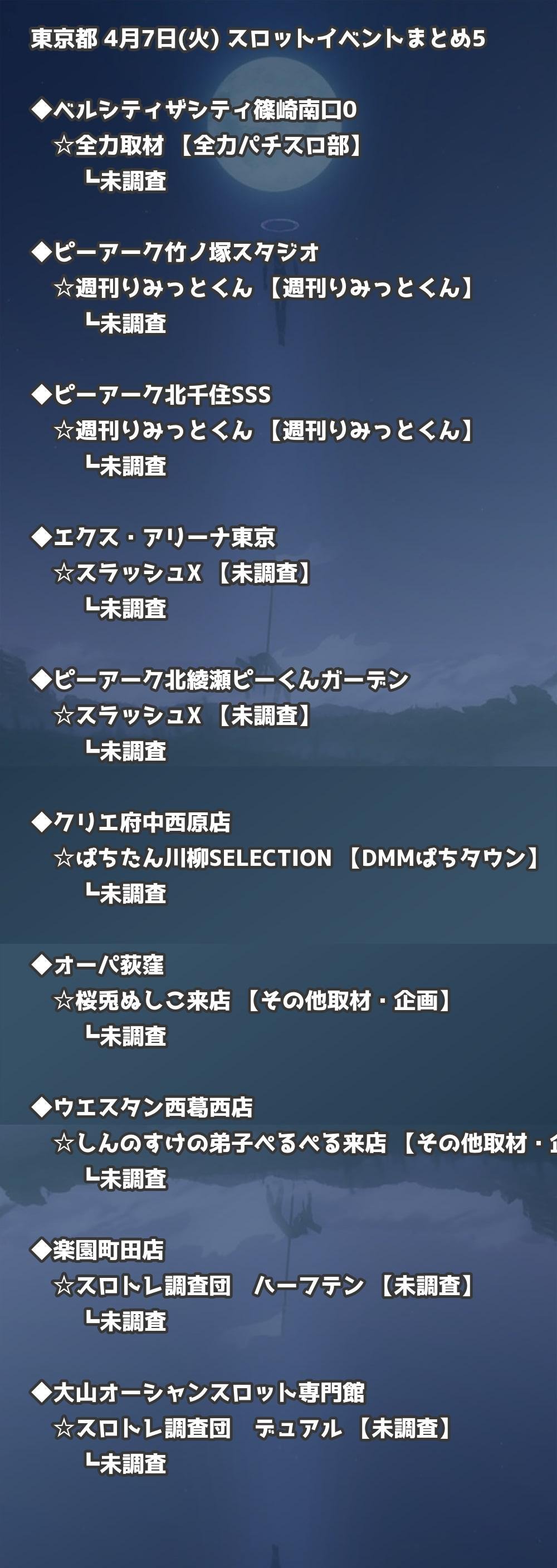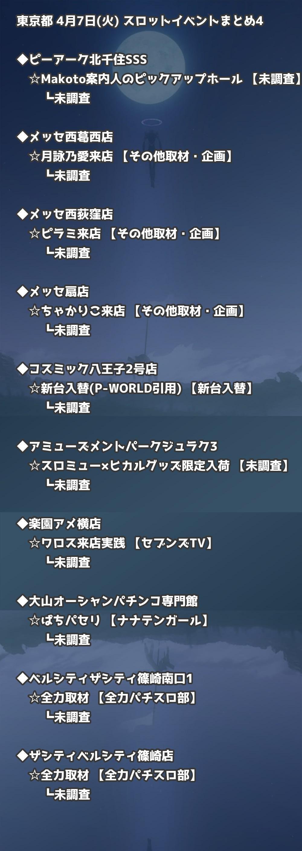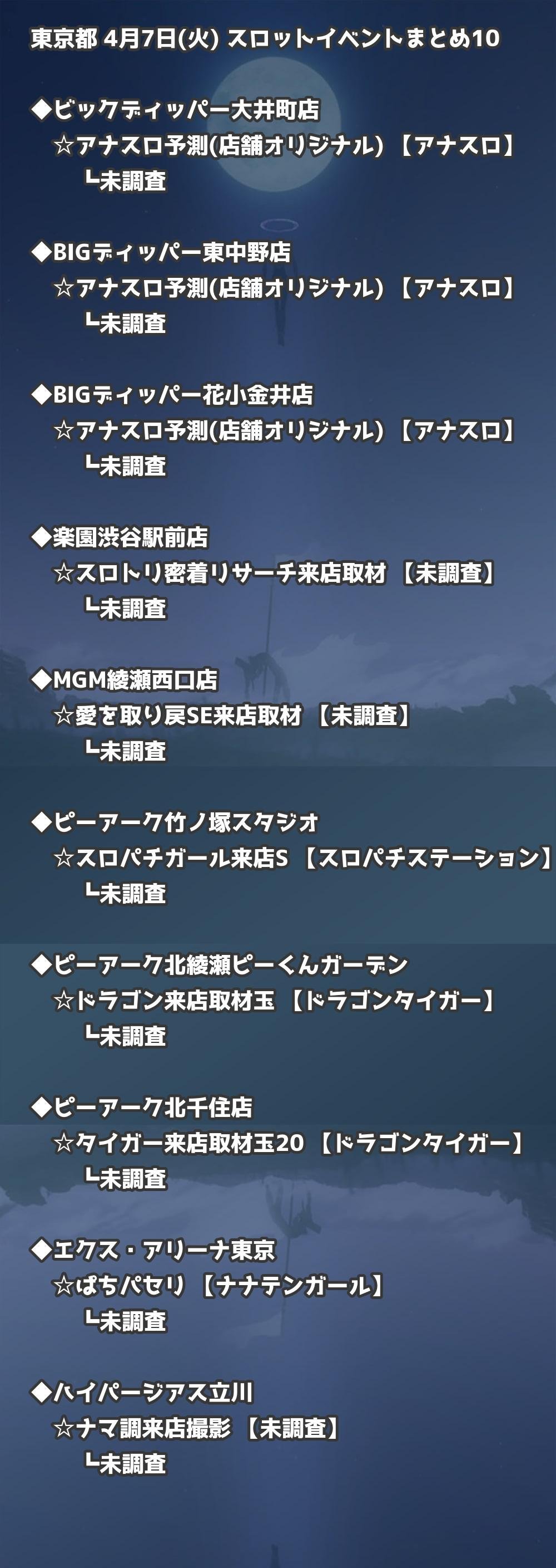 【東京都】4月7日(火) パチンコホールイベント取材まとめ記事です。